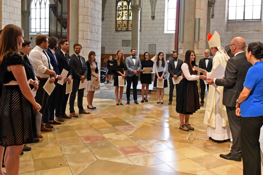 Noch am selben Tag seien die Emmaus-Jünger aufgebrochen, um den anderen zu erzählen, was sie erlebt hatten, griff Wörner das Ende des Evangeliums noch einmal auf. Damit ermutigte er die jungen Religionslehrerinnen und Religionslehrer, dem Vorbild der beiden Jünger zu folgen und ebenfalls Zeugnis zu geben von der Botschaft, für die sie brennen.