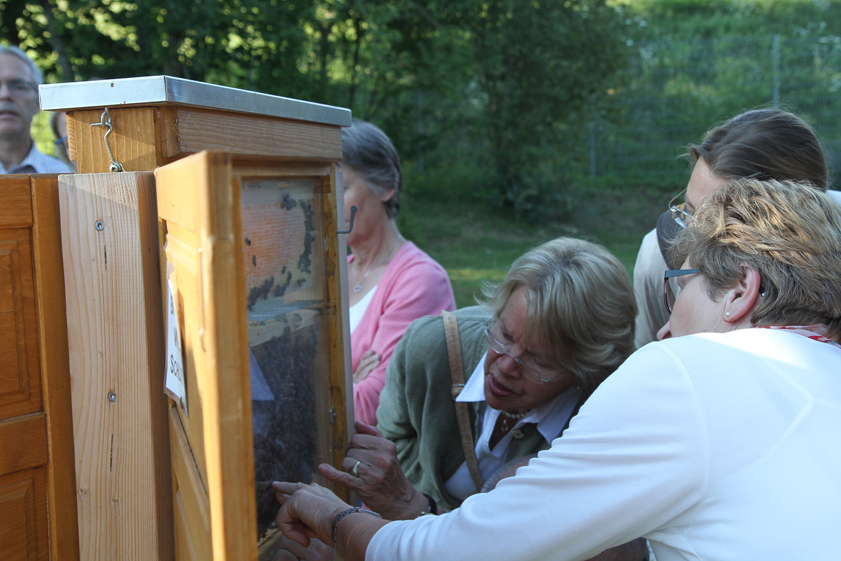 Von der vielfältigen Kulturlandschaft profitieren dann sowohl der Mensch als auch die Natur. Dass es allerdings in einigen Punkten auch Diskussionsbedarf unter den Gästeführern gab, zeigte sich spätestens bei der Besichtigung des Bienen-Schaukastens. Letztendlich war man sich jedoch einig, dass der Schutz der Wildtiere und insbesondere der Bienen, nicht alleine die Aufgabe der Landwirte sein dürfe. Ein jeder sei hier gefordert.