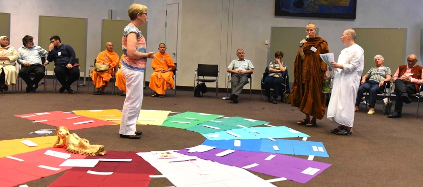 Die Vertreter der fünf anwesenden Glaubensrichtungen waren deshalb eingeladen, anhand des ausgelegten Jahreskreises jeweils drei Feiertage aus ihrer Religion zeitlich einzuordnen. Anhand von Symbolen veranschaulichten sie, wie sie gefeiert werden.