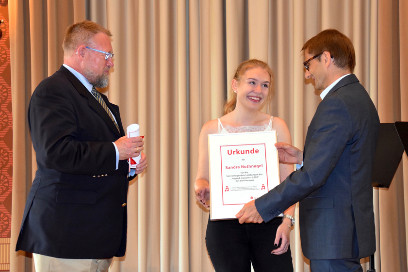 Lienhardt stellte dabei die Bürgerstiftung kurz vor und hielt die Laudatio auf Nothnagel, die ihre musikalische Ausbildung in den Bläserklassen der Georg-Hipp-Realschule und an der Städtischen Musikschule erhalten hat. Hier gehört sie seit 2017 dem Posaunen-Ensemble unter Musikschulleiter Auwi Geyer an. 2018 feierte sie beim Wettbewerb „Jugend musiziert“ Riesenerfolge: 1. Platz beim Regionalwettbewerb in Ingolstadt mit 24 von 25 möglichen Punkten, 1. Platz beim Landeswettbewerb in Regensburg mit dem gleichen Ergebnis und ein „sehr guter Erfolg“ auf höchster Ebene beim Bundeswettbewerb in Lübeck (18 von 25 Punkte).