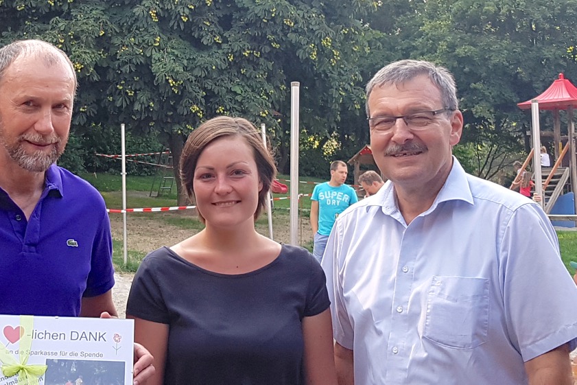 (ty) „Wasser marsch“, hieß es beim Kindergartenfest in Hettenshausen: Der neue Wasserlauf der „Ilmtalmäuse“ wurde damit offiziell in Betrieb genommen. Die Mädchen und Buben hatten ihren Spaß, Vize-Bürgermeister Wolfgang Hagl spendete den fleißigen Eltern und Helfern ein dickes Lob für ihre Arbeit. Ein Dankeschön ging auch an die Sparkasse Pfaffenhofen für eine Finanzspritze in Höhe von 500 Euro für den Wasserlauf. Übergeben wurde sie vom zuständigen Marktbereichsleiter Bernd Schäfer (Foto oben, links) an Kindergartenleiterin Katrin Wallner – auch Bürgermeister Hans Wojta (rechts) zeigte sich erfreut über den Zuschuss.
