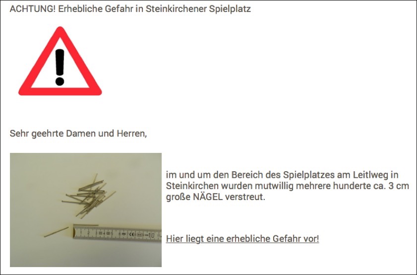 Steinkirchener Spielplatz gesperrt: Zahlreiche Nägel entdeckt