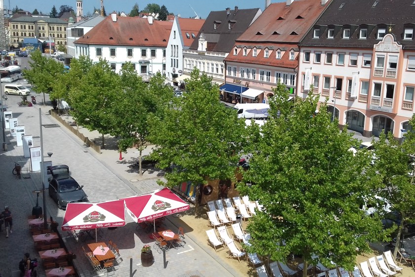 Der autofreie Bereich vor dem Rathaus soll – so wird erklärt – auf der Südseite des Hauptplatzes bis etwa in Höhe des Kaufhauses K&L sowie auf die Sonnenstraße ausgedehnt werden. Die neue Fußgängerzone werde durch Poller von der Fahrbahn abgegrenzt. „Die dadurch entstehenden Flächen erhalten durch die Pflanzung einer Baumreihe hinter der Bushaltestelle gegenüber dem Landratsamt mehr Aufenthaltsqualität. Außerdem werden zusätzliche Sitzgelegenheiten geschaffen.“