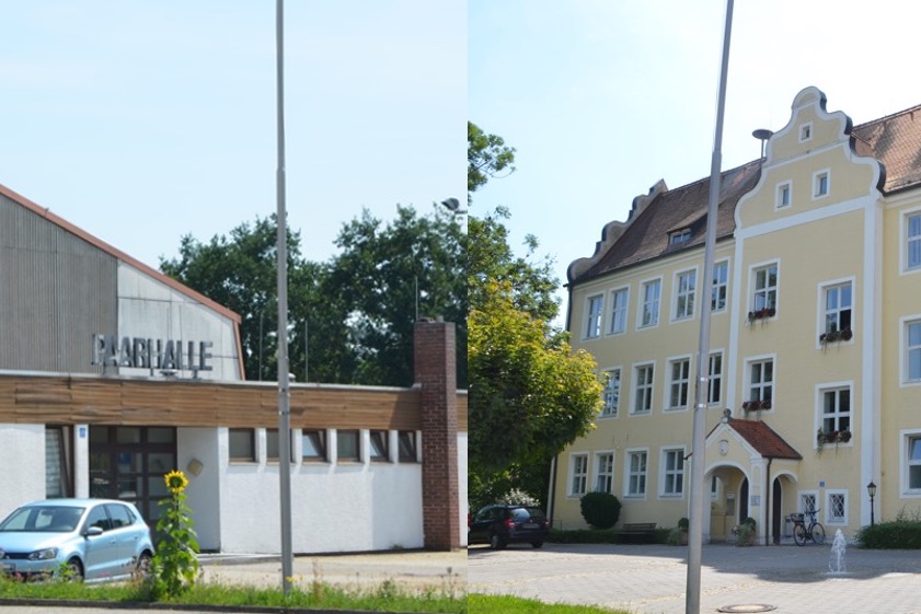 Um diese beiden Gebäude geht es: Links die Paarhalle, rechts das alte Rathaus (Fotomontage).