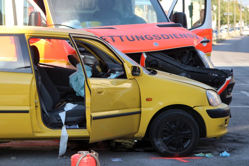 (ty) Am gestrigen Nachmittag ist es auf der Kreuzung von Adolf-Schmetzer-Straße und Weißenburgstraße in Regensburg zu einem heftigen Verkehrsunfall zwischen einem Krankenwagen im Einsatz und einem Pkw gekommen, bei dem mehrere Personen zum Teil schwerer verletzt worden sind. Nach bisherigen Erkenntnissen der Polizei war gegen 17 Uhr der Rettungswagen auf der Adolf-Schmetzer-Straße stadteinwärts auf Einsatzfahrt. "Er fuhr mit Sondersignalen bei Rotlicht in die Kreuzung zur Weißenburgstraße ein, um diese in Richtung Ostentor zu überqueren", so ein Polizei-Sprecher. "Eine Pkw-Lenkerin, die von der Nibelungenbrücke kommend die Kreuzung geradeaus passieren wollte, fuhr bei Grünlicht ebenfalls in die Kreuzung ein, so dass die beiden Fahrzeuge kollidierten."