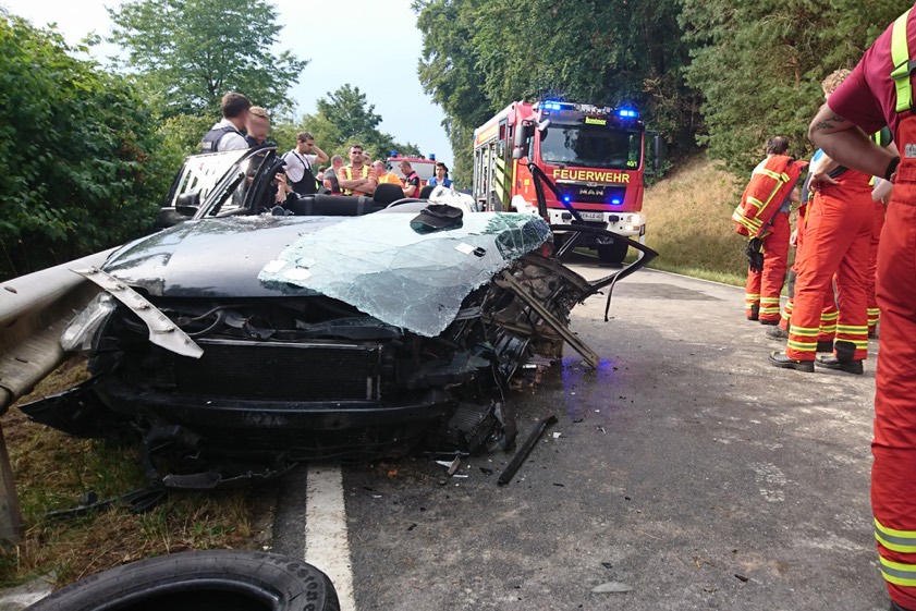 „Das Fahrzeugdach musste mittels hydraulischem Rettungssatz entfernt werden, um die verletzte Person besonders schonend aus dem Fahrzeug zu befreien“, erklärt ein Feuerwehr-Sprecher.