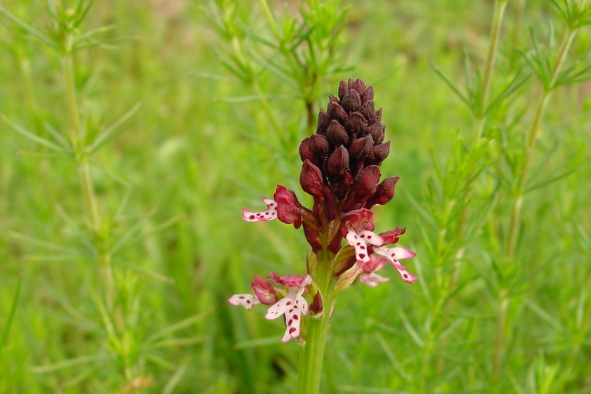 (ty) Das zierliche, sommergrüne und krautig wachsende Brand-Knabenkraut ist – wenngleich selten – auch noch an einigen Stellen im Landkreis Pfaffenhofen zu finden. Diese hübsch anzusehende Pflanze heißt botanisch "Neotinea ustulata" und gehört – man kann es vielleicht erahnen – zu der Familie der Orchideen. Sie wird zwischen zehn und 40 Zentimeter, manchmal sogar bis zu 60 Zentimeter hoch und hat zwei kugelige, eiförmige Knollen.