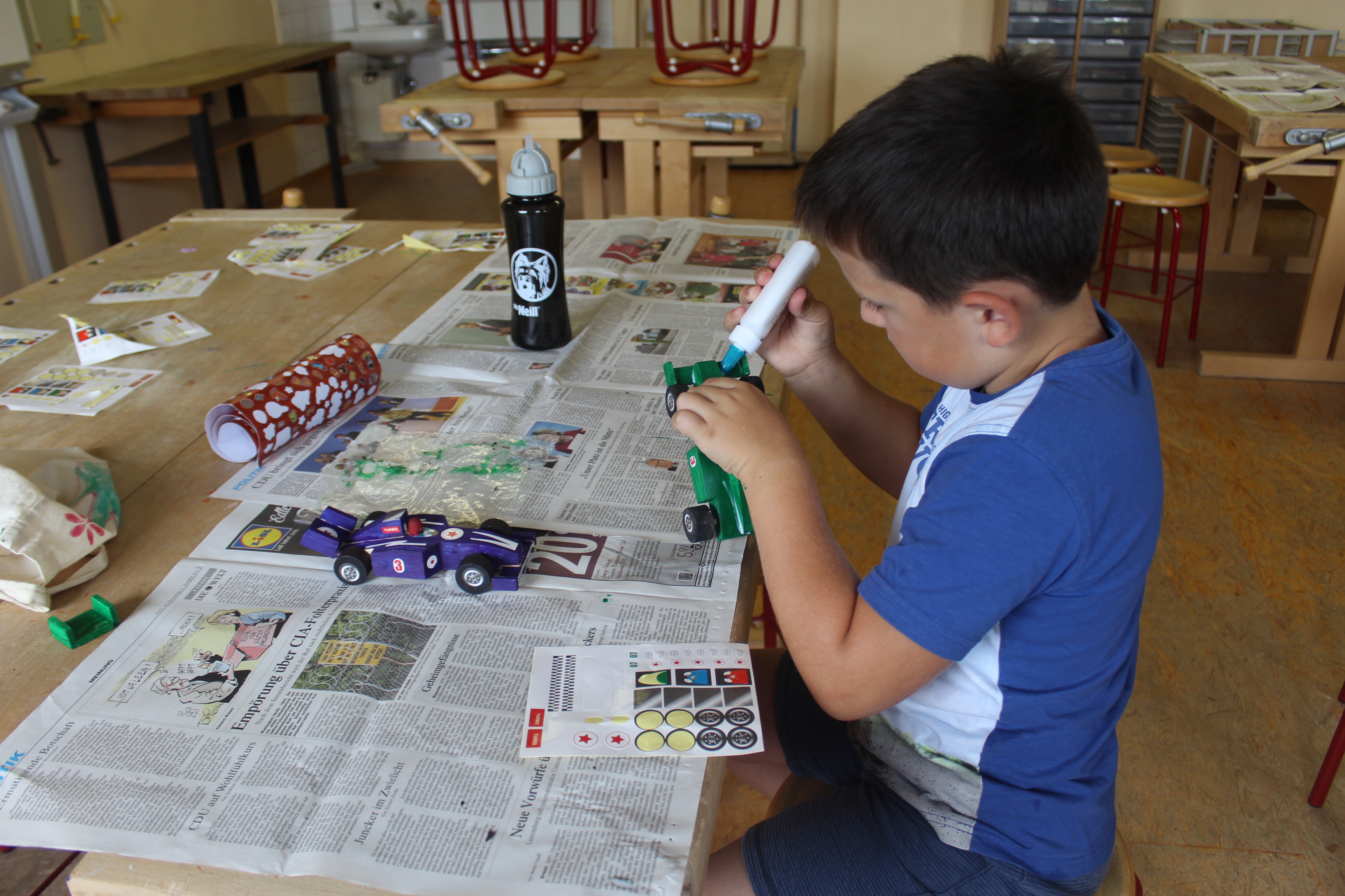 (ty) Mit weniger Aktion, dafür allerdings sehr unterhaltsam, lehrreich und kreativ ging es beim Hohenwarter Ferienkalender in die zweite Runde. Selbst gebastelte Fische und Rennautos aus Holz, Werkeln mit Papa, selbst gemachte Flip-Flops oder eigenhändig gestaltete Gemälde auf Leinwand – die Kunstwerke der Buben und Mädchen konnten sich wirklich sehen lassen. Außerdem auf dem Programm: Ein lustiger Auftritt von „Clown Heini“ und Spaß im Mais-Labyrinth. Ferner gab es Interessantes über Planeten und Sterne im mobilen Planetarium zu erfahren.