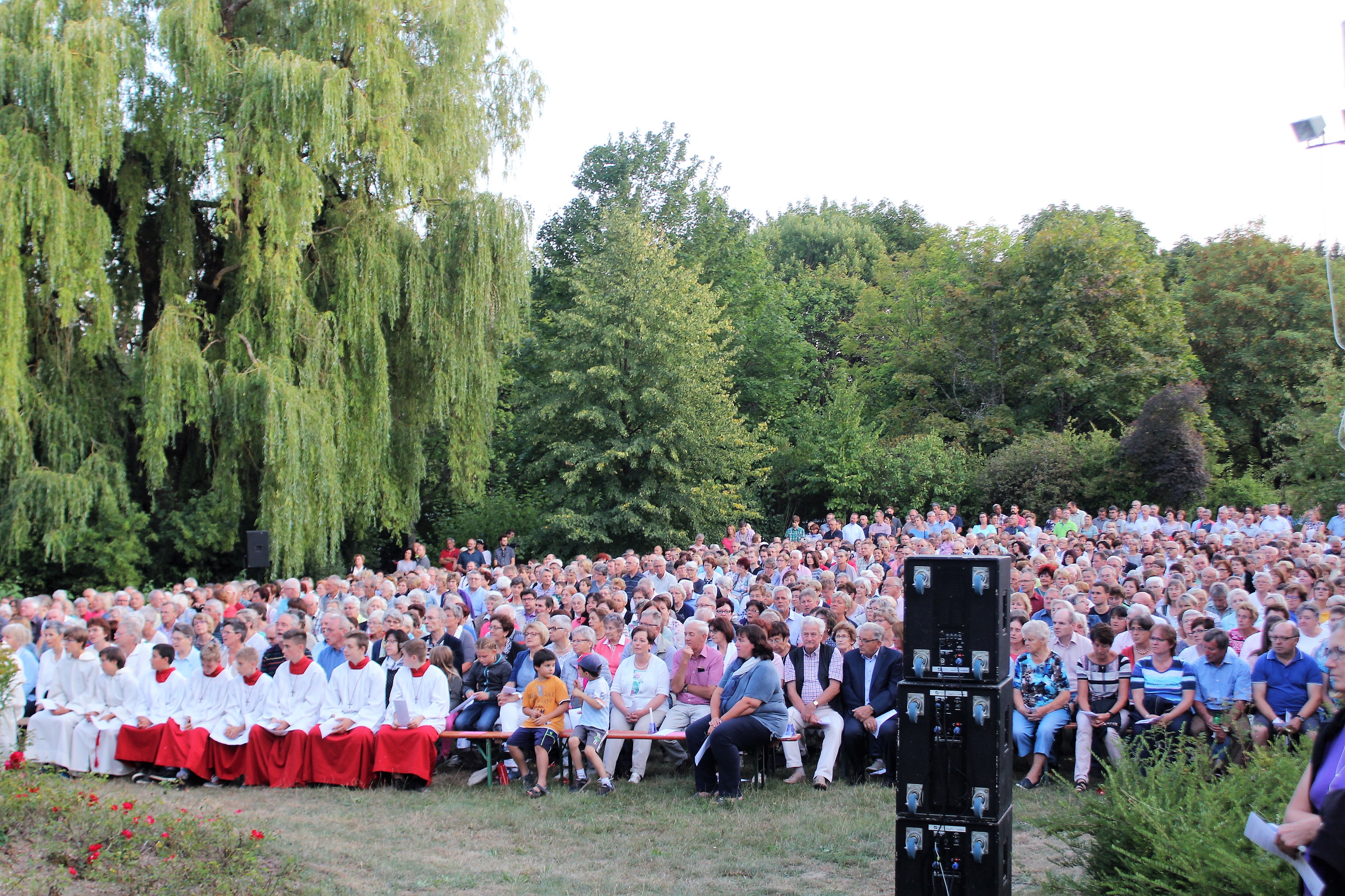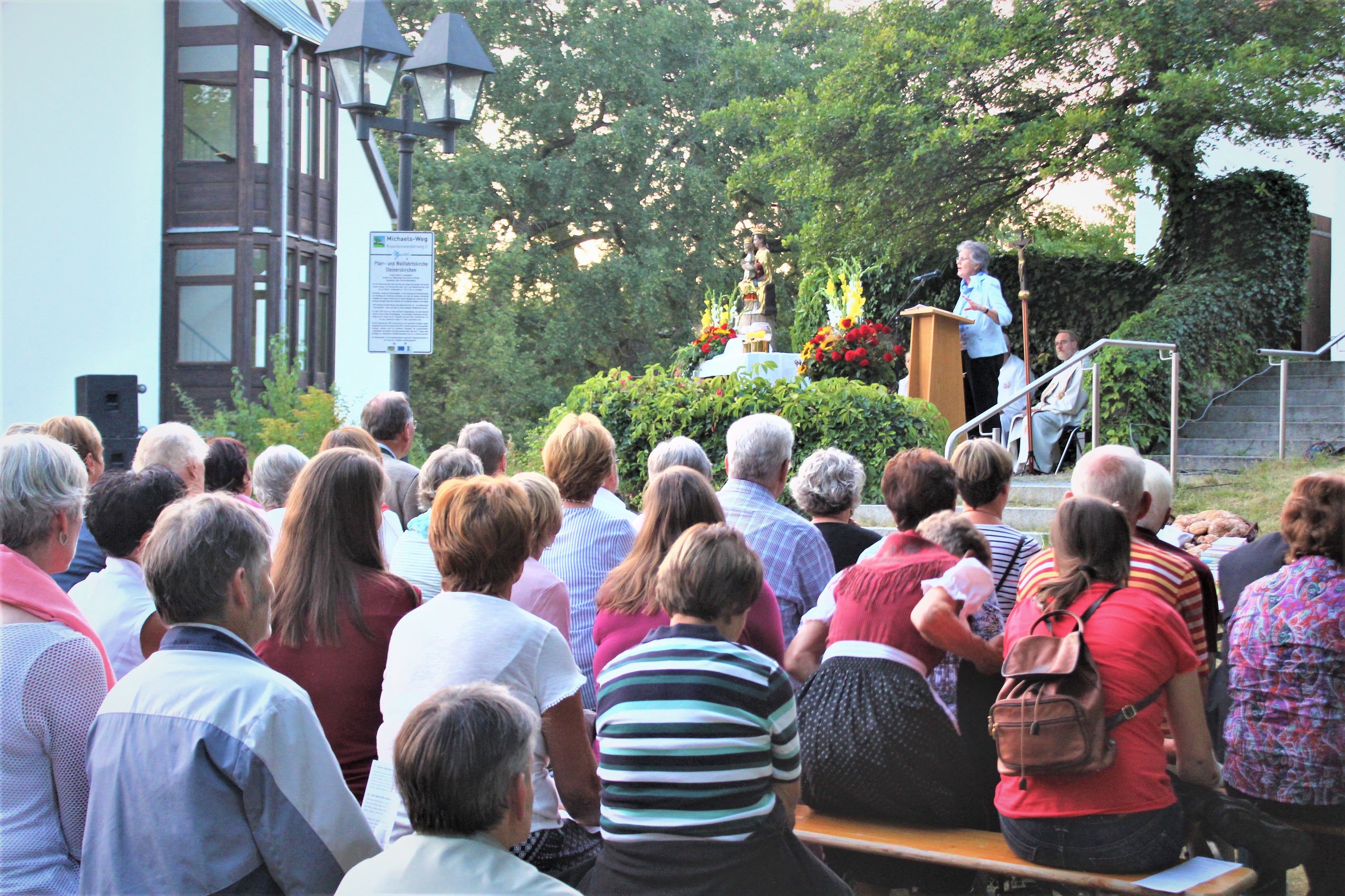 (ty) Nach guter Tradition hatte die „Oase Steinerskirchen“ am 15. August zu einer Marienfeier mit Lichter-Prozession eingeladen. Auch heuer waren wieder weit über 1000 Besucher der Einladung gekommen, um das Fest der Aufnahme Marias in den Himmel zu feiern. Zum großen Erfolg dieser Freiluft-Veranstaltung tragen sowohl die mit traditionellen und modernen Elementen stimmungsvolle gehaltene Andacht als auch die anschließende Lichterprozession bei. Musikalisch umrahmt wurde die Festpredigt von einem Trio unter der Leitung des Steinerskirchener Paters Norbert Becker und den Hohenrieder „Musibuam“.