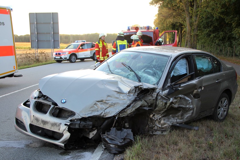 (aa) Auf der B8 bei Pfatter (Kreis Regensburg) kam es gestern gegen 18.30 Uhr zu einem schweren Verkehrsunfall (Fotos). Nach ersten Erkenntnissen kam ein silberner BMW aus der Fahrtrichtung Straubing auf die Gegenfahrbahn, streifte dort einen entgegenkommenden blauen Skoda und kollidierte anschließend frontal mit einem nachfolgenden schwarzen BMW.