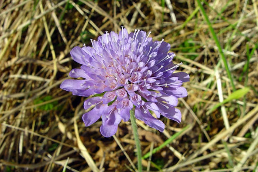 Die Samen der Ackerwitwenblume bleiben an Menschen oder Tieren hängen. Und wenn das nicht klappt, dann werden sie eben flugfähig.