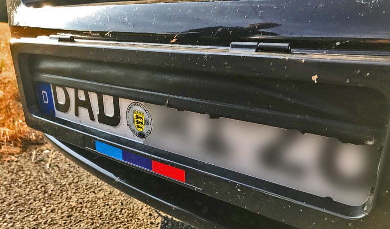 Der 54-jährige Fahrer aus Baden-Württemberg hatte nämlich auf dem eigentlichen Kennzeichen eine Halterung mit einer Art elektrischen Jalousie betrieben. Diese wurde mittels Fernbedienung aus dem Fahrzeuginnenraum betätigt, wodurch es möglich war, das Kennzeichen abzudecken. Die nicht zulässige Vorrichtung montierten die Polizisten noch vor Ort ab und stellten sie sicher. Der geständige Fahrer gab an, dass er „unliebsame Bilder“ der Polizei umgehen wollte. Er wurde wegen Kennzeichenmissbrauchs angezeigt. Weiterhin prüfen die Beamten, ob er damit während seiner Fahrt noch weitere Verkehrsverstöße begangen hat. (Foto: Polizei)