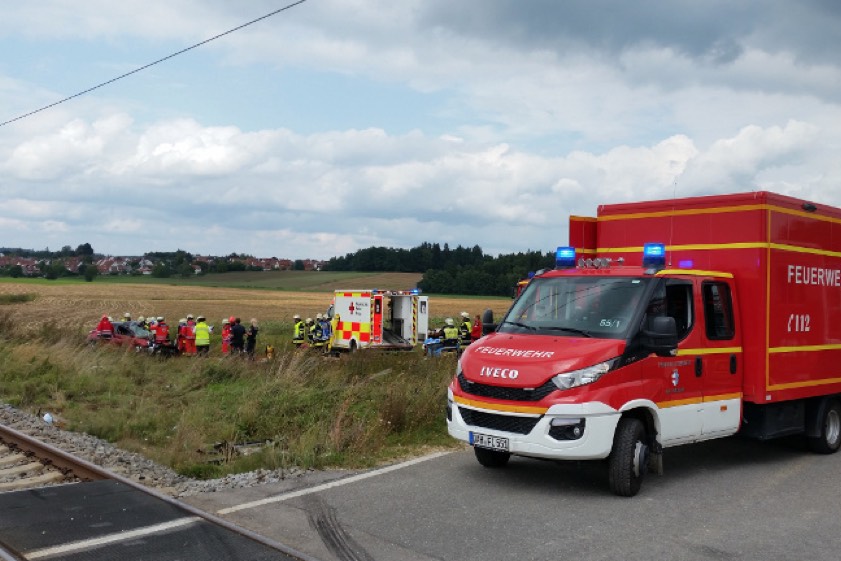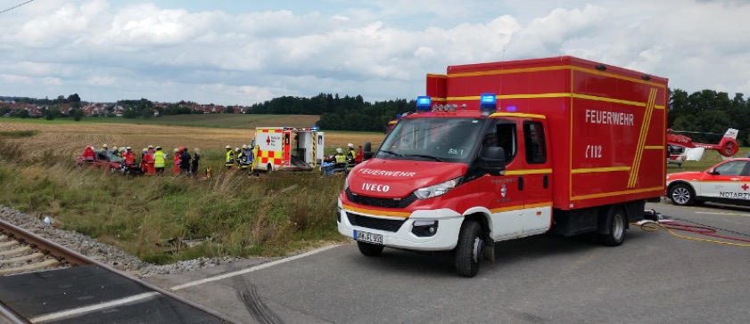 Der Unfall ereignete sich am ungesicherten Bahnübergang bei Ried. Wie es heißt, wurde gegen 13.55 Uhr der Kia der Frau auf der Fahrerseite von einer in Richtung Markt Indersdorf fahrenden S-Bahn erfasst. Durch den heftigen Aufprall wurde das Auto ungefähr 50 Meter in das angrenzende Feld geschleudert. Die 62-jährige Pkw-Lenkerin aus dem Gemeinde-Bereich von Röhrmoos (Kreis Dachau), die alleine in ihrem Wagen unterwegs war, wurde in dem Wrack eingeklemmt.