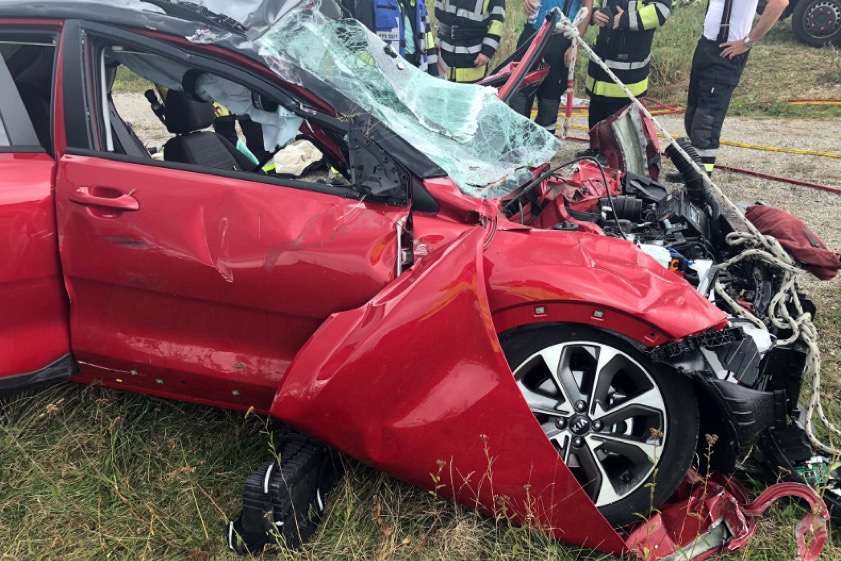 62-jährige Autofahrerin wurde in ihrem Wrack eingeklemmt und schwer verletzt.