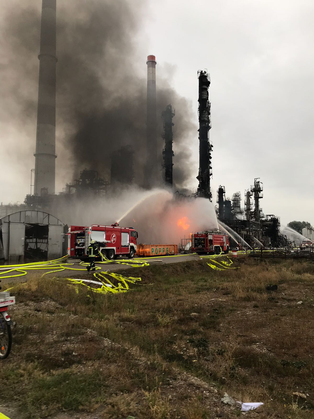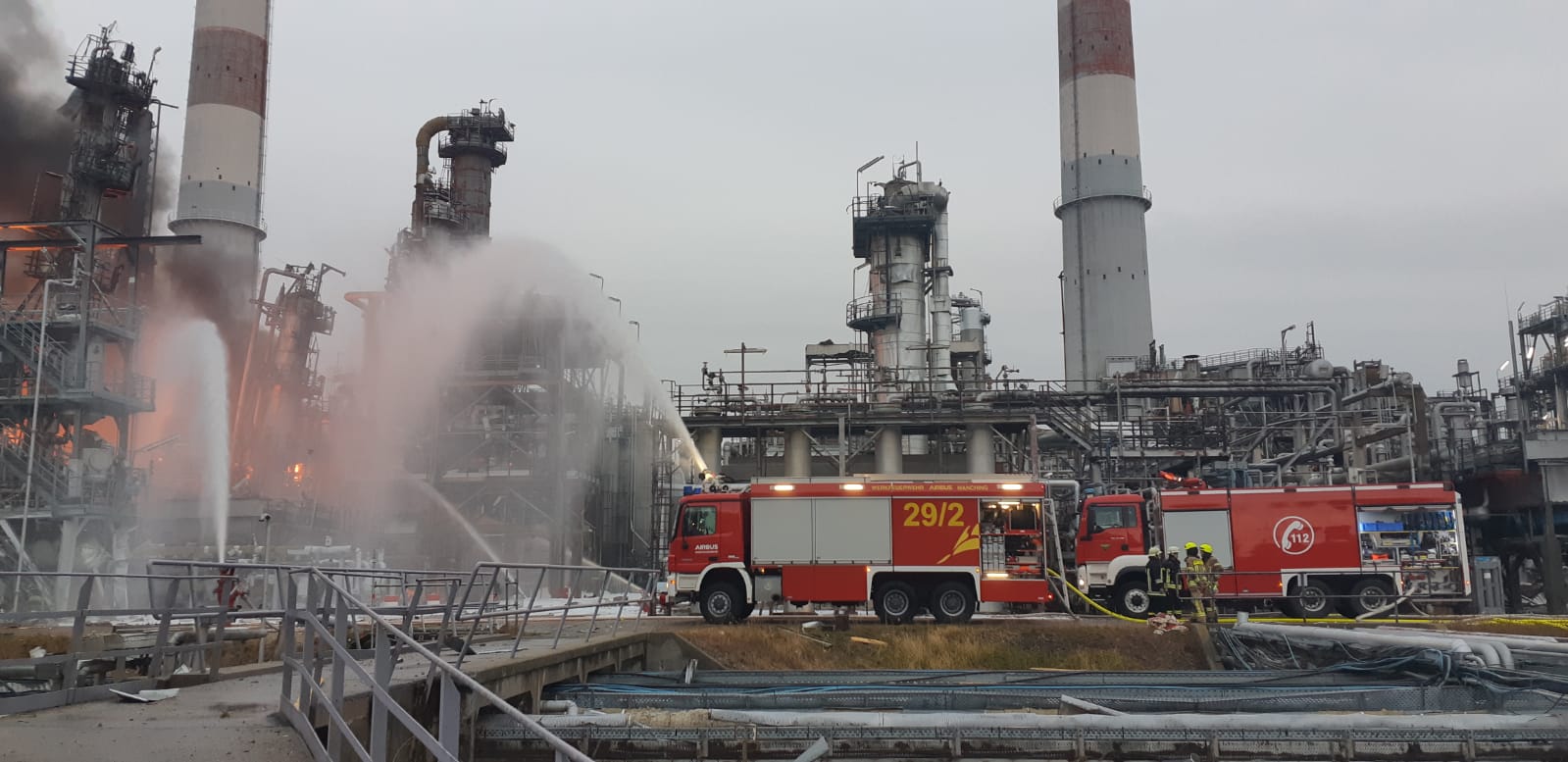 "Heute in den frühen Morgenstunden kam es auf einem Raffinerie-Gelände in Vohburg zu einer Detonation in einem Anlagenteil und anschließendem Großbrand auf dem Gelände. Zahlreiche Einsatzkräfte der Feuerwehren, Rettungsdienste und Polizei sind derzeit vor Ort im Einsatz. Bisher sind acht verletzte Personen bekannt, davon wurden drei mit mittelschweren bis schweren Verletzungen ins Krankenhaus verbracht.