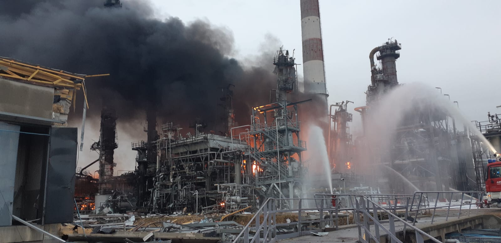 Ein Sprecher des Landratsamts erklärte gegen 11.25 Uhr gegenüber unserer Zeitung, dass die Produktions-Anlage der Raffinerie stark beschädigt beziehungsweise zerstört worden ist. Der Brand sei inzwischen unter Kontrolle. Das Tank-Lager werde nach wie vor gekühlt, um ein Übergreifen der Flammen zu verhindern. Zur Höhe des Schadens liegen noch keine offiziellen Informationen vor. "Es wird gekühlt und kontrolliert abgebrannt, es gehen von der Anlage keine über einen normalen Brand hinausgehenden Gefahren mehr aus und treten auch keine gefährlichen Stoffe aus", hieß es vom Landratsamt.
