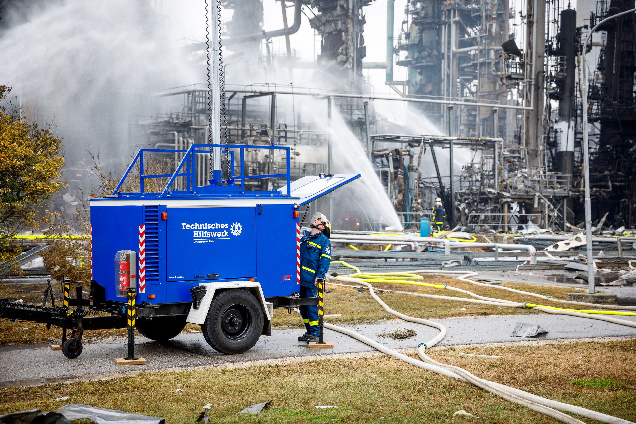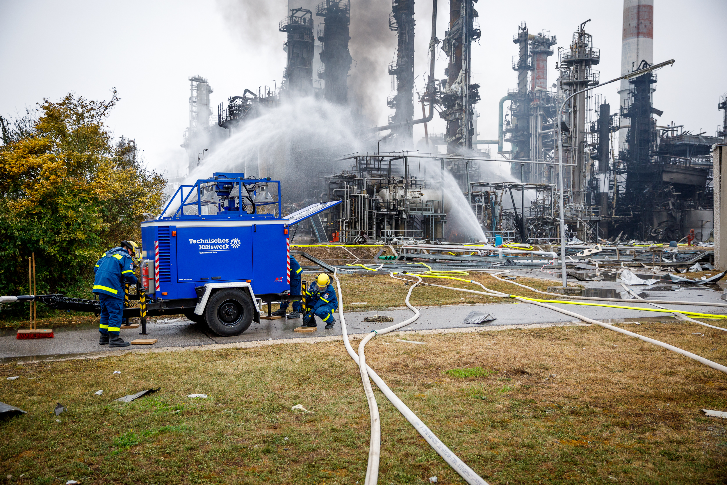 (ty) Die verheerende Explosion und der Großbrand auf dem Gelände der Bayernoil-Raffinierie bei Vohburg am gestrigen Morgen hat Hunderte von Einsatzkräften auf den Plan gerufen und in Atem gehalten. Im Kreis Pfaffenhofen war der Katastrophenfall ausgerufen worden. Ein Sprecher des Landratsamts hatte unserer Zeitung berichtet, dass alle verfügbaren Kräfte mobilisiert worden sind. Auch das Technische Hilfswerk (THW) aus Pfaffenhofen ist seither im Einsatz. THW-Sprecher Andreas Englbrecht berichtete heute Vormittag von dem Geschehen. Fotos geben zudem Einblick in das Ausmaß der Zerstörung sowie in die Arbeit der ehrenamtlichen Helfer.