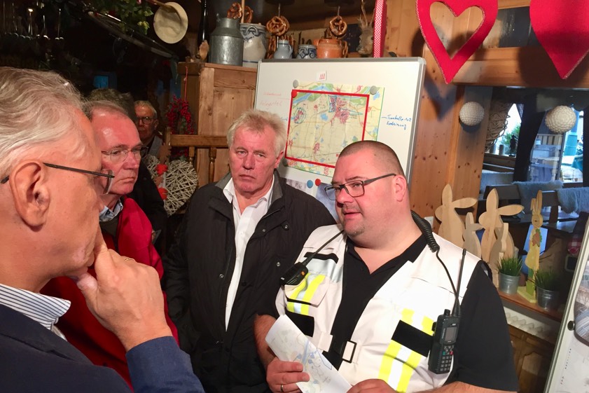 Bayerns Innenminister Joachim Herrmann (links) wird informiert. Vize-Landrat Anton Westner und Vohburgs Bürgermeister Martin Schmid stehen sichtlich unter dem Eindruck der Katastrophe.