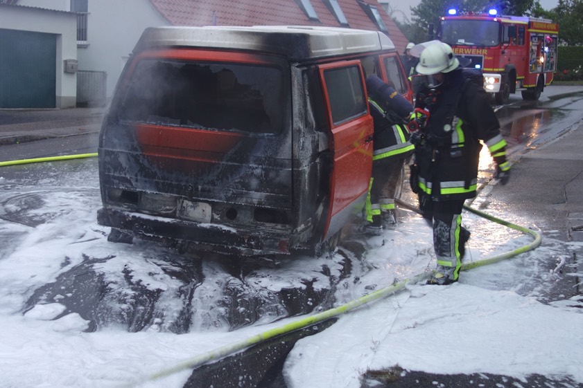 (ty) Am heutigen Morgen wurde die örtliche Feuerwehr gegen 6.40 Uhr wegen des Brandes eines Kleinbusses in die Köschinger Straße in Hepberg (Kreis Eichstätt) gerufen (Foto oben). Der Wagen brannte im Motoren-Bereich, der sich bei diesem Modell am Heck befindet – dadurch wurde auch der Innenraum durch Feuer und Rauch zerstört. Die Floriansjünger sicherten die Einsatzstelle ab und löschte den Brand unter Atemschutz. Verletzt wurde niemand.