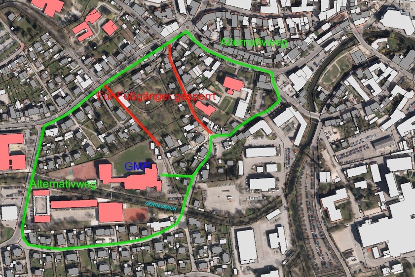 (ty) Die Sperrung der Straße „Draht“ in Pfaffenhofen für Verkehr und Fußgänger wird voraussichtlich bis 21. September andauern. Das wurde heute von den Stadtwerken gemeldet. Da die Arbeiten in unmittelbarer Nachbarschaft der Grund- und Mittelschule sowie der Joseph-Maria-Lutz-Schule stattfinden und sich bis in den Schulbeginn ziehen, werden alle Schüler, Eltern und Lehrer sowie Besucher vom Kommunal-Unternehmen noch einmal gebeten, „sich – aus Sicherheitsgründen – unbedingt an die Beschilderung zu halten“.