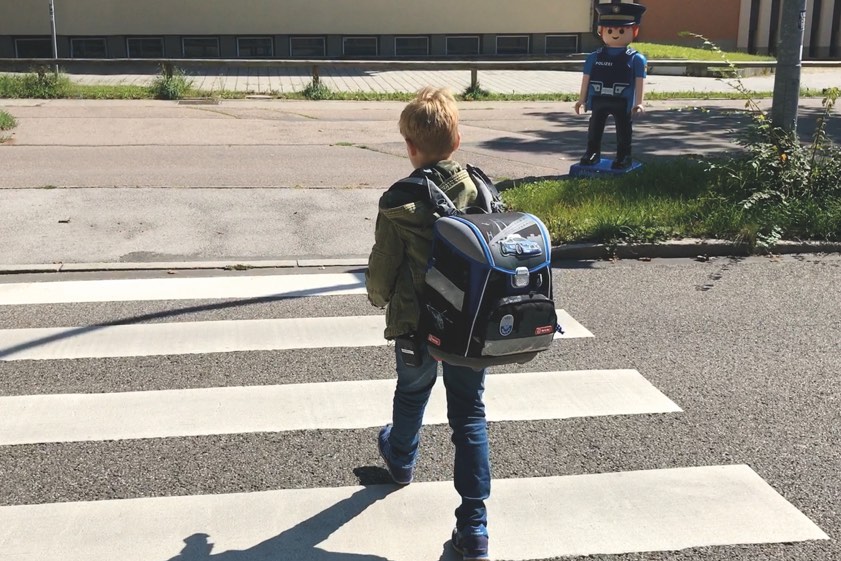 - Bei der Auswahl des Schulwegs sollte die sicherste Variante, die über Querungshilfen wie Fußgänger-Ampeln oder Zebrastreifen verfügt, der kürzeren vorgezogen werden. Viele Gemeinden bieten Schulwegpläne zur Orientierung an.