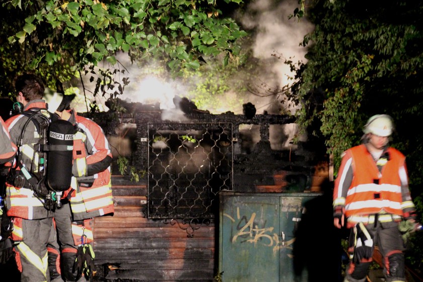 (ty) In der Nacht auf heute brannte in Regensburg auf dem Gelände des Sportparks-Süd am Kaulbachweg ein Holzschuppen nieder (Foto oben). Die Ursache ist noch ungeklärt. Gegen 23.30 Uhr meldete eine Anwohnerin bei der Integrierten Leitstelle einen Feuerschein. Beim Eintreffen von Polizei und Feuerwehr stand der etwa zehn auf fünf Meter große Holzbau bereits in Vollbrand. Der Schuppen, der auch als Kiosk genutzt wurde, brannte komplett ab. Verletzt wurde niemand, der Sachschaden beträgt etwa 20 000 Euro. Derzeit ist die Brandursache noch völlig unklar. Die weiteren Ermittlungen werden von der Kriminalpolizei geführt. Die Beamten haben noch in der Nacht mit der Spurensicherung begonnen.