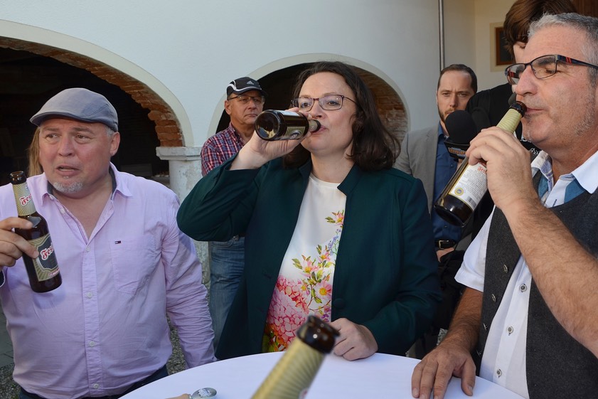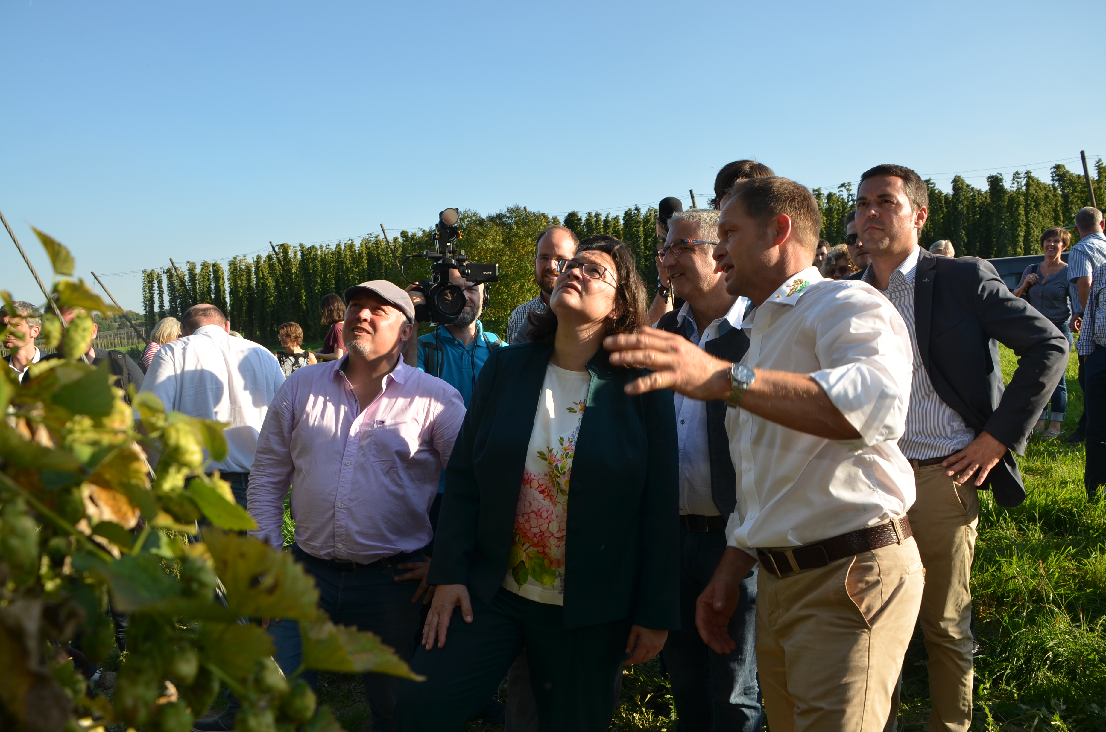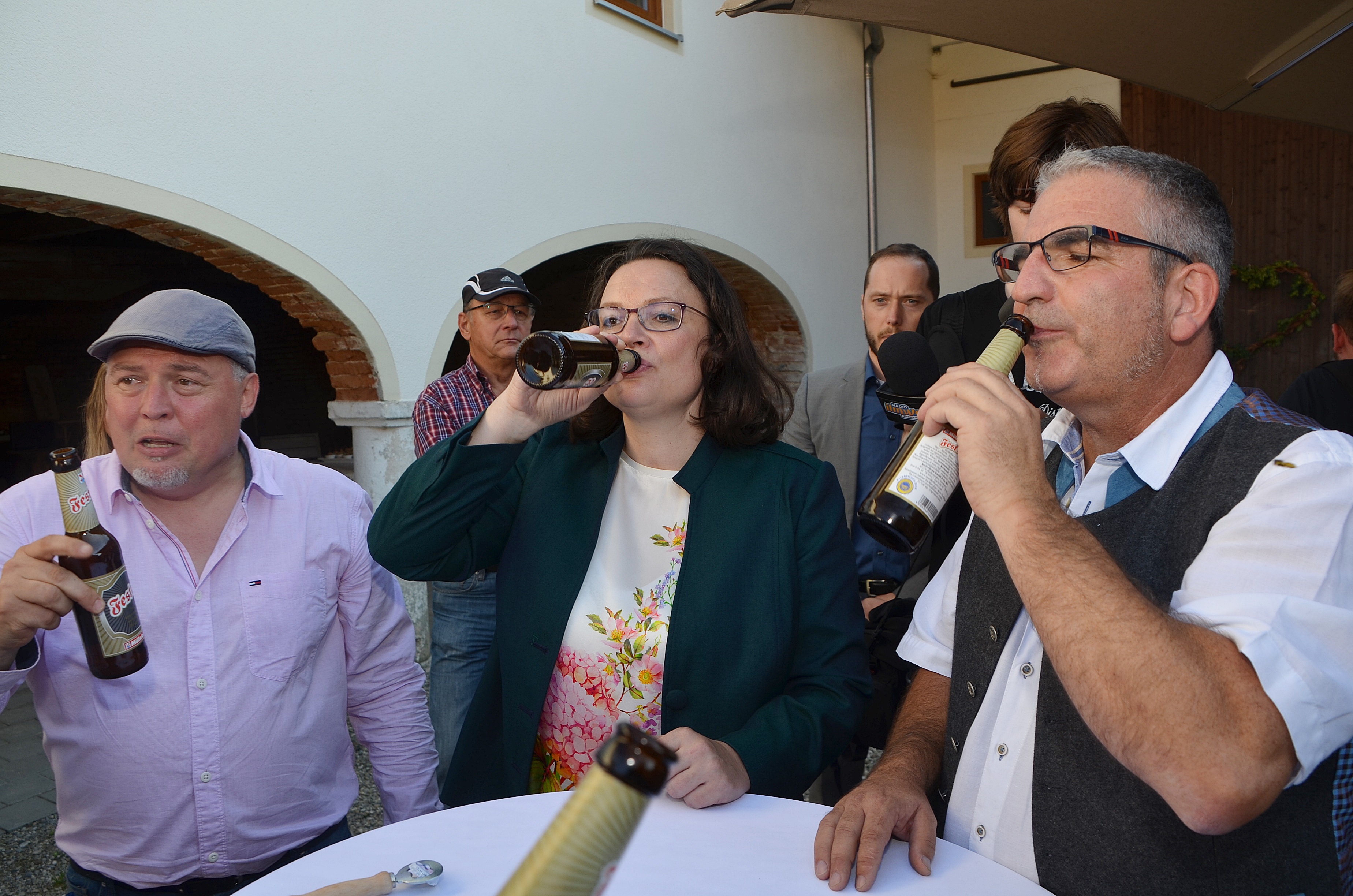 Es war durchaus schmeichelhaft für den Pfaffenhofener SPD-Kreischef und hiesigen Landtags-Kandidaten Markus Käser, dass die Frontfrau der deutschen Sozialdemokraten seine Einladung angenommen hatte und heute in den Landkreis gekommen war. Andrea Nahles reiste direkt aus München an, wo sie zuvor mit den Spitzen-Vertretern der bayerischen SPD, Natascha Kohnen und Markus Rinderspacher, im Landtag zusammengesessen hatte. Aus aktuellem und kritischem Anlass. Umso wohlfühl-mäßiger ging es dann in der Hallertau zu.