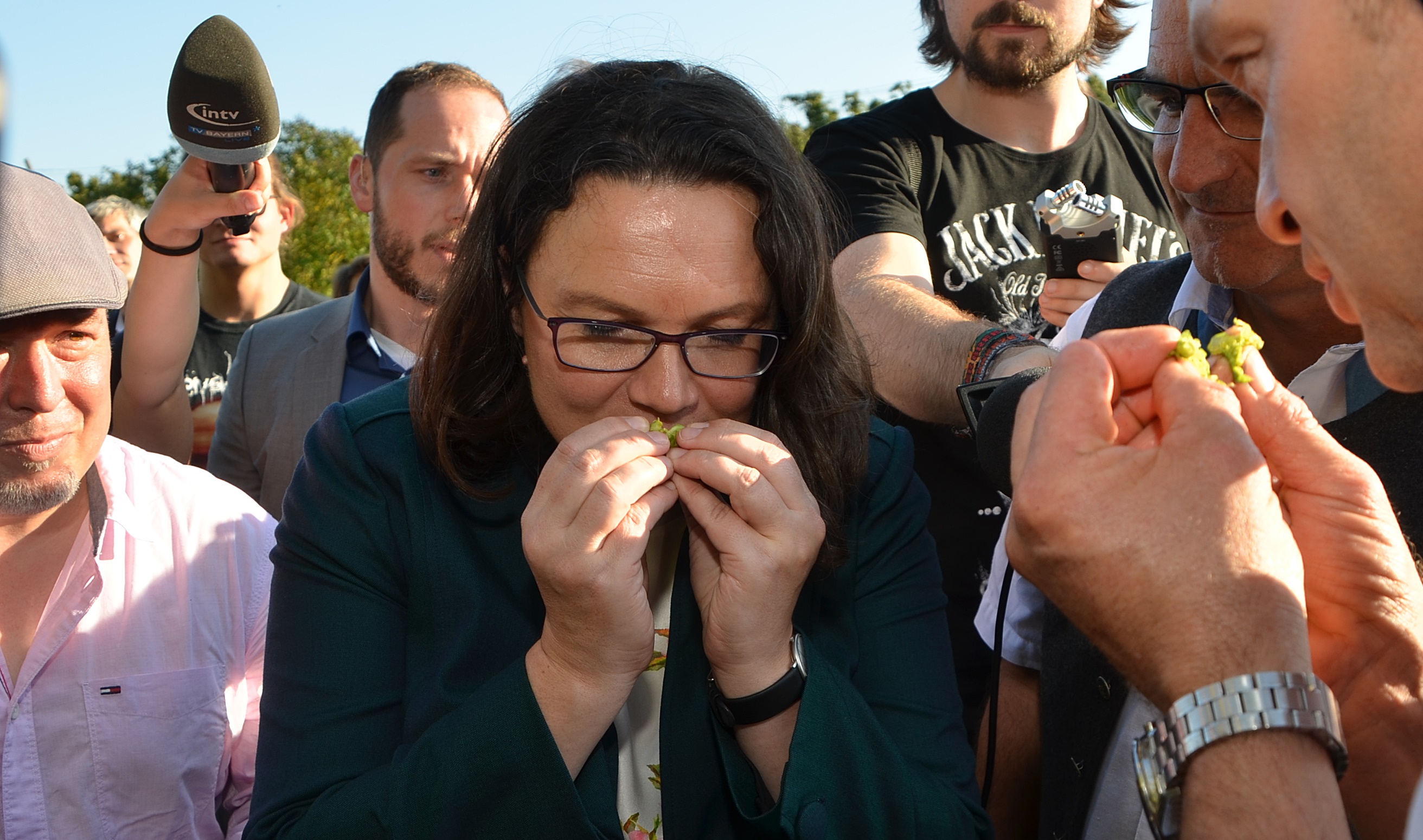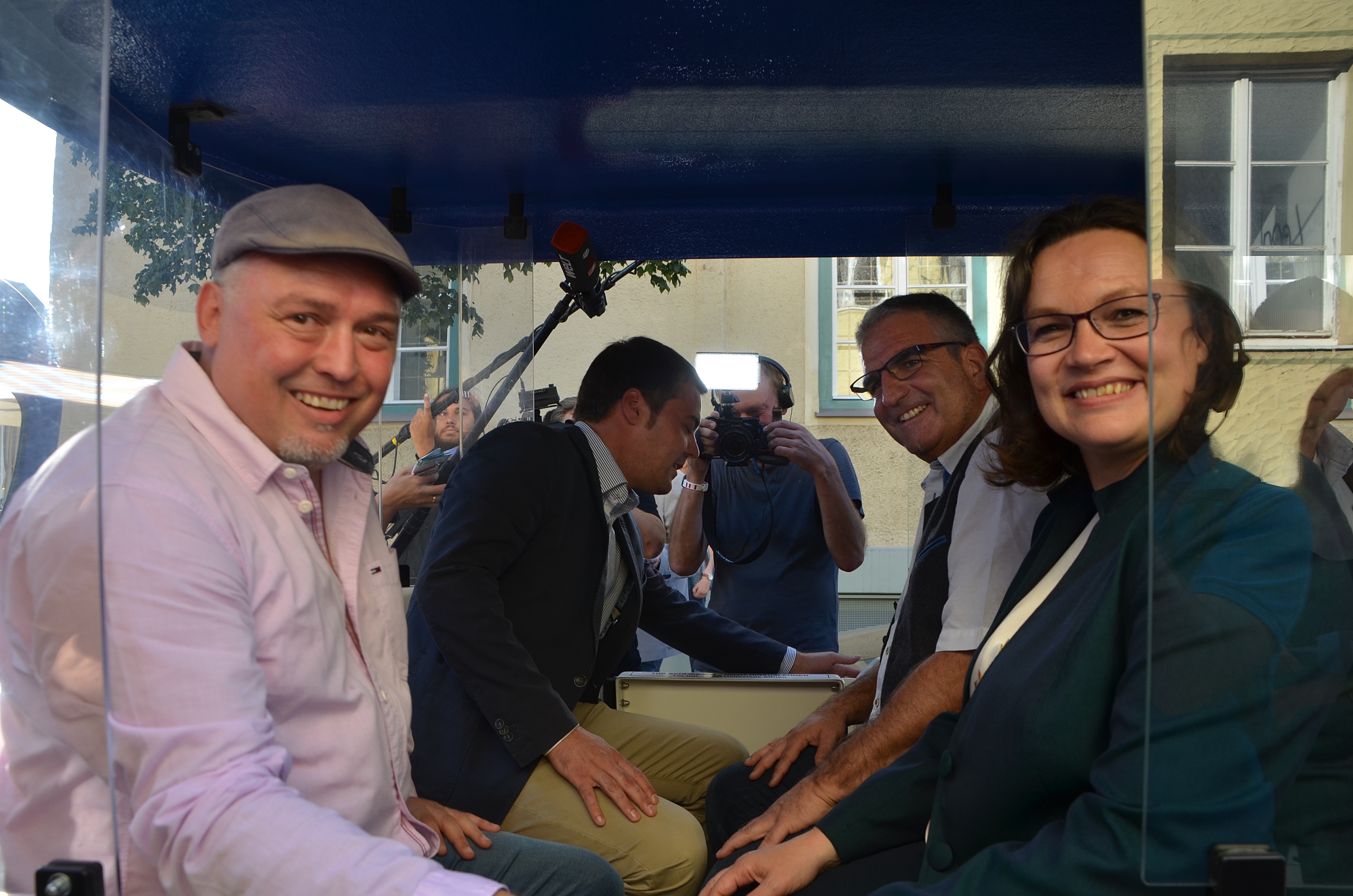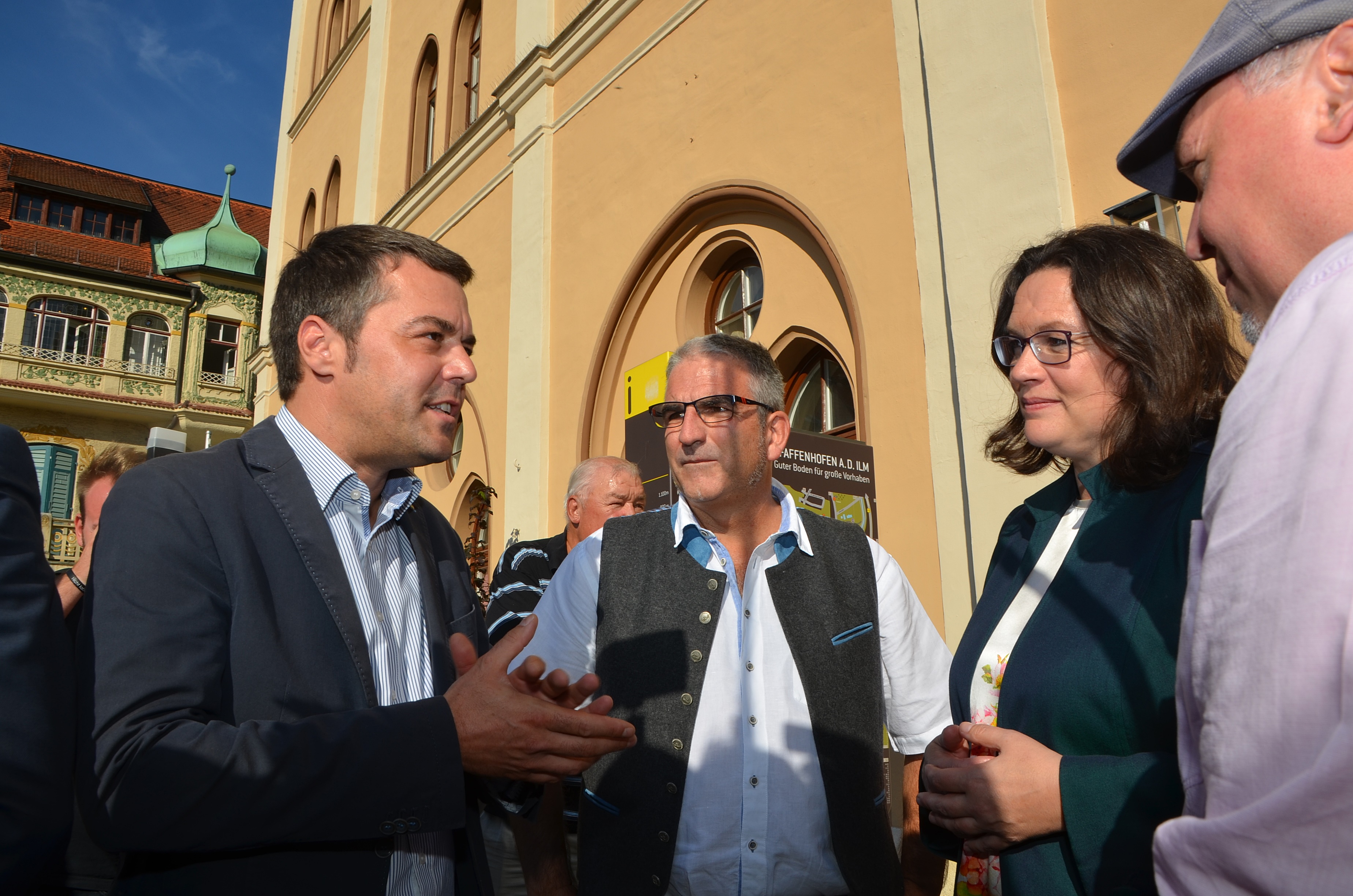 Es war durchaus schmeichelhaft für den Pfaffenhofener SPD-Kreischef und hiesigen Landtags-Kandidaten Markus Käser, dass die Frontfrau der deutschen Sozialdemokraten seine Einladung angenommen hatte und heute in den Landkreis gekommen war. Andrea Nahles reiste direkt aus München an, wo sie zuvor mit den Spitzen-Vertretern der bayerischen SPD, Natascha Kohnen und Markus Rinderspacher, im Landtag zusammengesessen hatte. Aus aktuellem und kritischem Anlass. Umso wohlfühl-mäßiger ging es dann in der Hallertau zu.