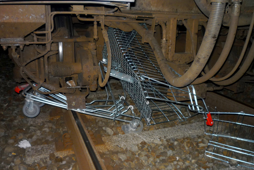 Einkaufswagen von S-Bahn überfahren