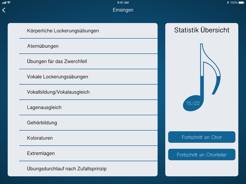 "Die Sänger können alle Noten der aktuellen Musikstücke einsehen, sich die verschiedenen Stimmen anhören und selbst dazu singen", wird zu der App erklärt. "Dabei kontrollieren sie mit einem einfachen Tool selbst, ob sie alle Töne treffen und zum richtigen Zeitpunkt einsetzen." Auf diese Weise könnten sich Chormitglieder neue Lieder auch einfach selbst erarbeiten.