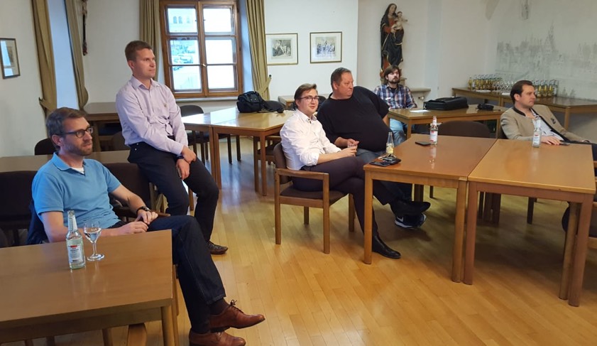 Der Pfaffenhofener Landrat Martin Wolf (CSU) im Gespräch mit Josef Postel (FDP). Links vorne: Landtags-Listenkandidat Christian Moser (CSU), rechts hinten: FDP-Kreischef Thomas Neudert.