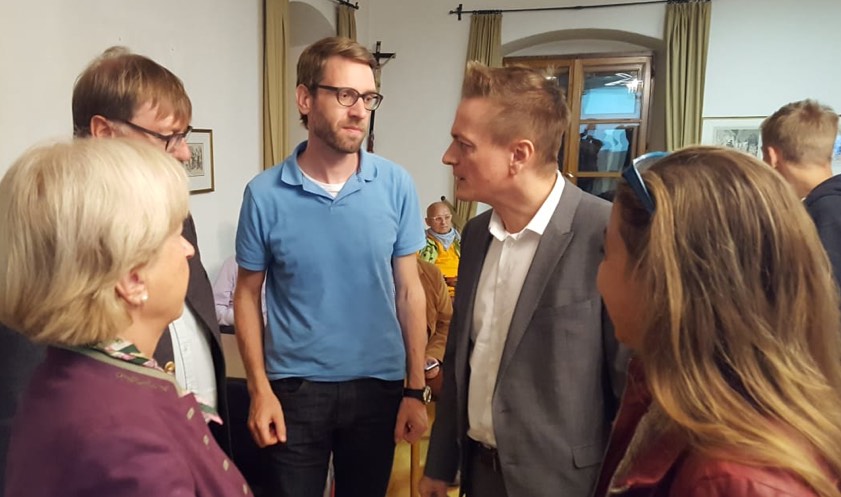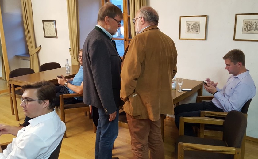 Karl Straub (graues Sakko) im Gespräch, unter anderem mit Landrat Martin Wolf und der früheren Landtags-Abgeordneten Erika Görlitz.