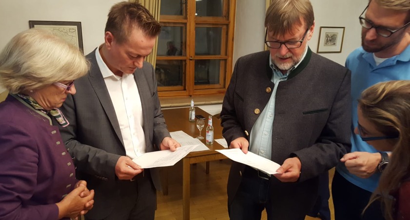 Studieren die Ergebnisse: Erika Görlitz (von links), Karl Straub, Landrat Martin Wolf, Albert Schmid und Straubs Gattin.
