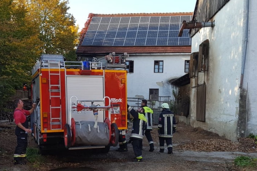 Der Brand war nach Angaben der Polizei kurz nach 16 Uhr entdeckt worden. Die Beamten gehen nach den bisher vorliegenden Erkenntnissen davon aus, dass das Feuer in einer der Garagen in dem Scheunen-Komplex ausgebrochen war, in dem sich mehrere Garagen befinden. Ein in dieser Garage stehender Pkw sei komplett ausgebrannt, die Flammen schlugen laut Polizei bis ins Obergeschoss. Als die Floriansjünger eintrafen, habe der betroffene Bereich bereits im Vollbrand gestanden, berichtete ein Vertreter der Pfaffenhofener Kreisbrandinspektion vor Ort im Gespräch mit unserem Reporter.