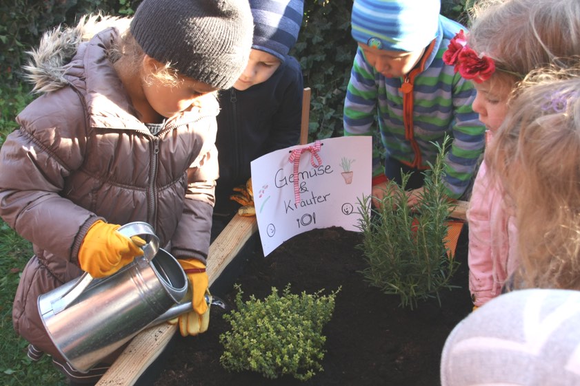 Huber bezeichnete die Beete als „ersten Schritt hin zu einem natürlichen Außenbereich des Kindergarten“. Sie erklärte, dass man sich bewusst für eine Platzierung im vorderen Teil des Gartens entschieden habe, da die Kinder dort öfter vorbeikommen und das Hochbeet damit stärker wahrnehmen. Hochbeete seien sehr beliebt: Die Kinder können im Stehen arbeiten und ein guter Pflanzenwuchs – also ein sichtbarer Erfolg – ist in aller Regel gewährleistet. Die Buben und Mädchen und ihr Erzieher Mirko Gehrke sangen als Dankeschön an die Spender noch zwei Lieder.