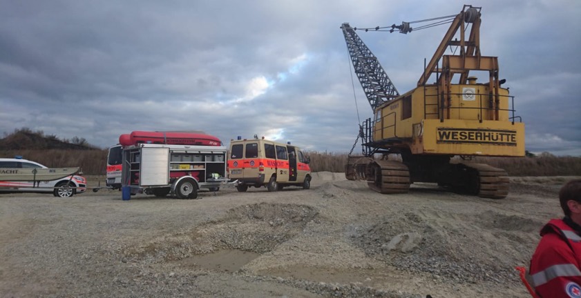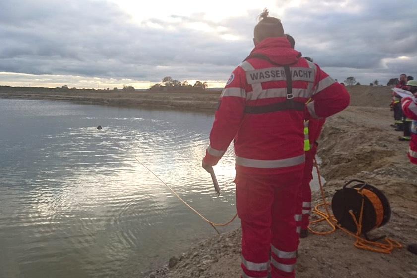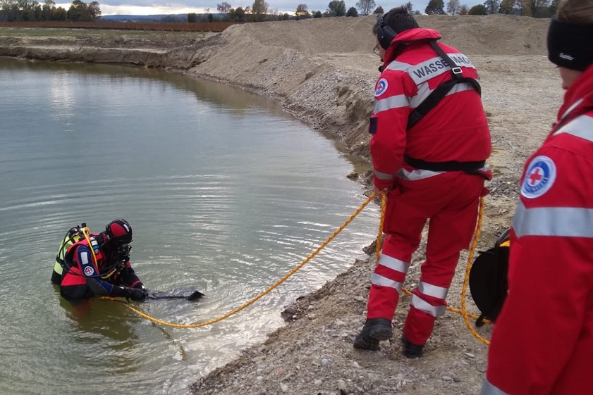 Die Bergung des Radladers gestaltet sich nicht so ganz einfach. Zum Ausfindig-Machen des komplett versunkenen Gefährts unter Wasser sowie zur Lage-Erkundung wurden die Schnelleinsatz-Gruppen der Wasserwachten aus Neuburg an der Donau und Ingolstadt alarmiert. „Nach kurzer Zeit konnte im trüben Wasser durch einen Taucher der Neuburger Wasserwacht der Radlader aufgefunden werden“, berichtet Alexander Wecker. Er ist Mitglied im Ingolstädter BKR-Kreisvorstand und Einsatzleiter in Sachen Wasserrettung.