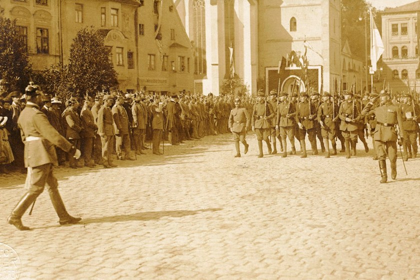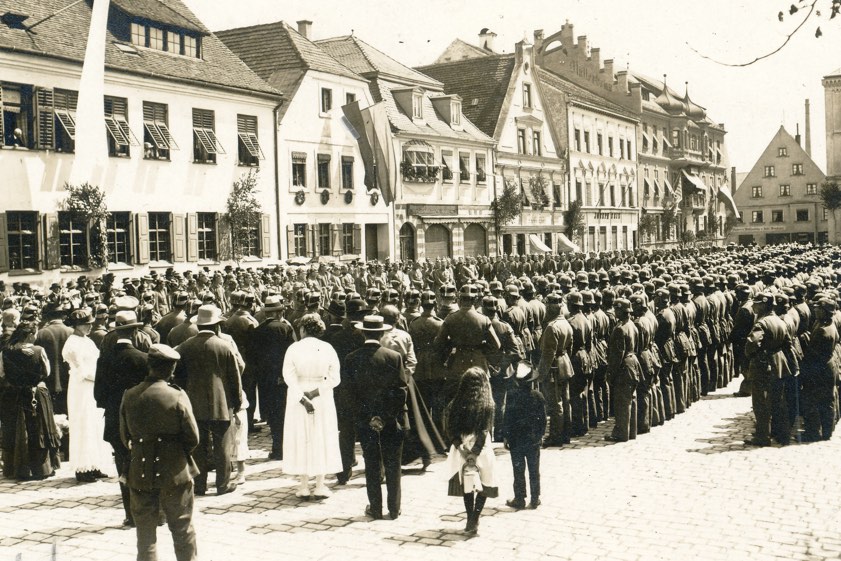Rekruten-Vereidigung auf dem Pfaffenhofener Hauptplatz im Jahr 1917.