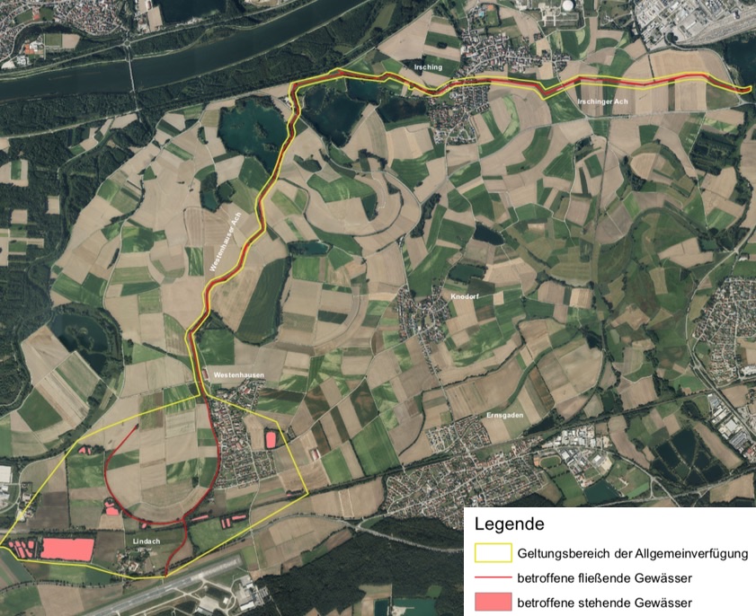 Das Landratsamt untersagte – in Reaktion auf die PFC-Belastung in Teilen der Gemeinde Manching – bekanntlich die Nutzung von Grundwasser zur Bewässerung im Bereich der Ortsteile Lindach und Westenhausen. Das gilt auch für außerorts liegende, bebaute Freizeit-Grundstücke. Diese Allgemeinverfügung gilt bereits seit 14. Mai dieses Jahres und noch bis 30. April 2032. In diesem Zeitraum untersagt ist außerdem die Benutzung von Oberflächenwasser zu Bewässerungszwecken aus den Gewässern nördlich und nordöstlich des Flugplatzes Manching. Es geht um Wasser aus Baggerseen, Westenhauser Ach und Irschinger Ach. Wer gegen diesen behördlichen Erlass verstößt, riskiert ein Zwangsgeld.
