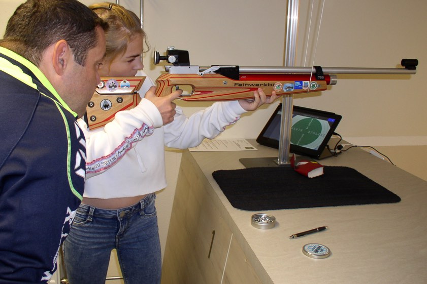 Nicht nur die Schlinge half am Anfang, das Gewicht des Luftgewehrs zu halten. Auch einen persönlichen Betreuer hatte jeder Teilnehmer zur Seite.