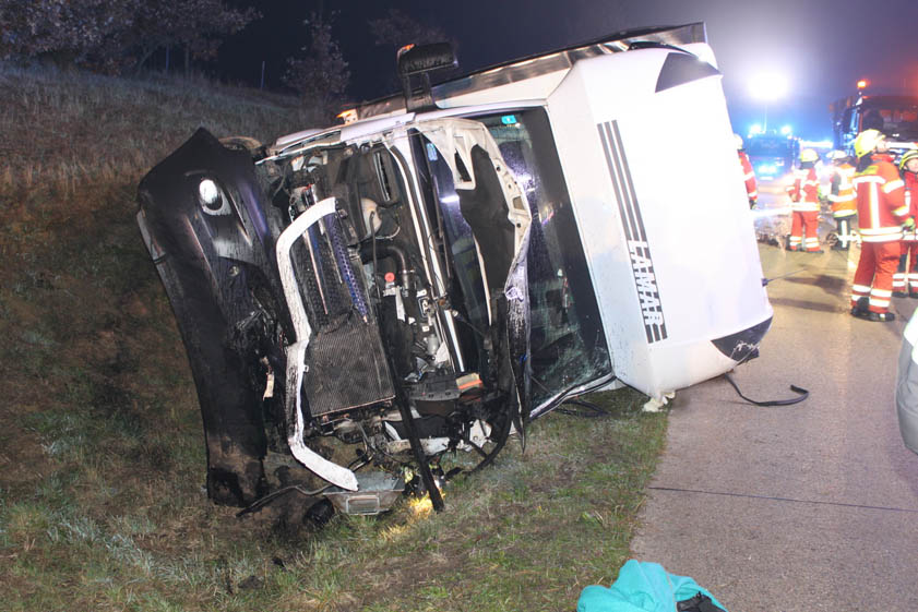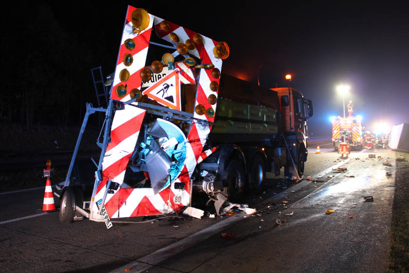"Ein Arbeiter der Autobahnmeisterei konnte sich durch einen Sprung zur Seite vor dem ankommenden Transporter retten, wurde dabei aber ebenfalls leicht verletzt", heißt es von Seiten der Beamten. Die Autobahn musste für etwa zwei Stunden komplett gesperrt werden, die Feuerwehren Langquaid und Hausen waren vor Ort.