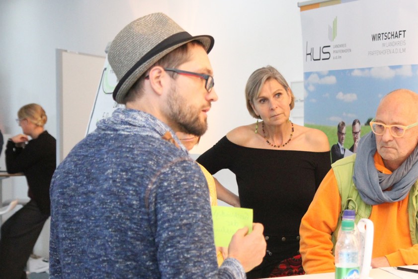 Weiter ging es mit der Definition der „Ist-Situation“ der Kultur- und Kreativ-Wirtschaft im Landkreis. Vor welchen Herausforderungen stehen die Branche und jeder einzelne? Welche davon kann man alleine lösen und wo ist es hilfreich, sich Unterstützung zu holen? Basierend darauf wurde eine Vision der Branche im Landkreis für die nächsten zehn Jahre entwickelt. „Es war inspirierend zu sehen, welches Potential an Ideen und Möglichkeiten in dem Raum versammelt war“, so KUS-Leiter Johannes Hofner.