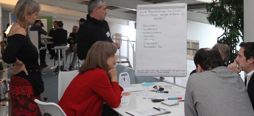 Die Branche setzt sich aus elf unterschiedlichen Sparten zusammen und ergibt laut KUS eine bunte Mischung aus kreativen und individuellen Köpfen. Bereiche seien beispielsweis aus der Musik-, Film- und Rundfunkwirtschaft, dem Markt der darstellenden Künste, der Designwirtschaft, dem Architektur-, Presse- und Werbemarkt sowie der Software-Industrie. „So unterschiedlich wie diese Branche auf den ersten Blick wirkt, so viele Gemeinsamkeiten einen diese“, erläuterte Laux. Diese Gemeinsamkeiten zu finden und zu definieren, war auch die Frage zu Beginn der Zukunfts-Werkstatt.
