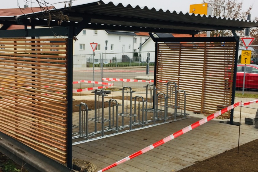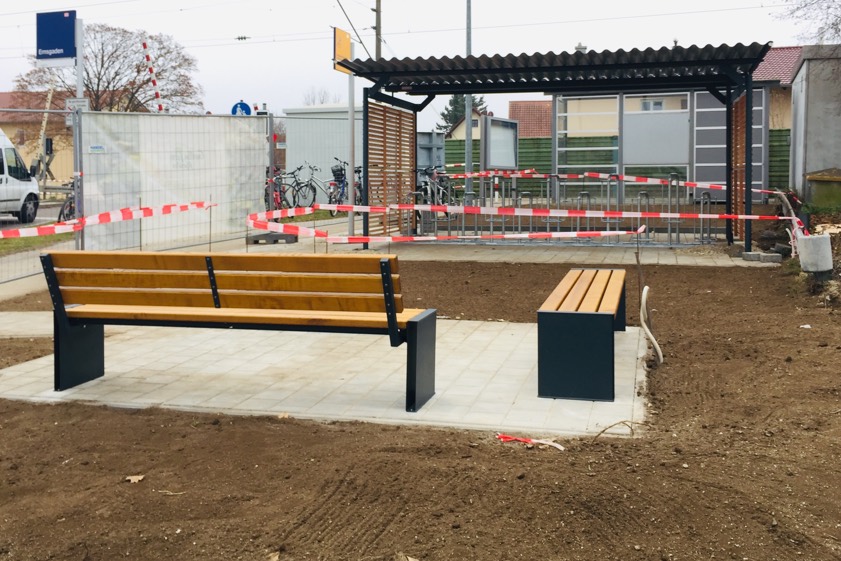 Die bisherige Anlage war veraltet, derzeit entsteht eine neue Fahrrad-Garage am Bahn-Halt. Außerdem werden weitere Sitzgelegenheiten geschaffen.