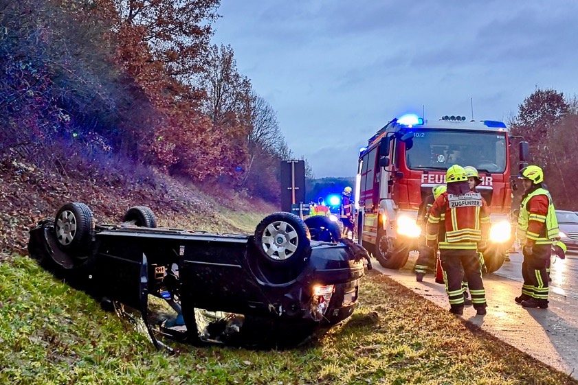 (aa) Gegen 15.40 Uhr ist es am heutigen Nachmittag zu einem schweren Verkehrsunfall auf der A 93 zwischen dem Autobahn-Dreieck Saalhaupt und Hausen in Fahrtrichtung Hallertau gekommen. Ein Skoda Fabia überschlug sich aus bislang noch unbekannten Gründen auf der regennassen Strecke und blieb letztlich auf dem Dach im Grünstreifen liegen. Bis zum Eintreffen der Feuerwehrleute aus Bad Abbach war die verunglückte Pkw-Lenkerin bereits von Ersthelfern aus dem Wrack befreit und erstversorgt worden.