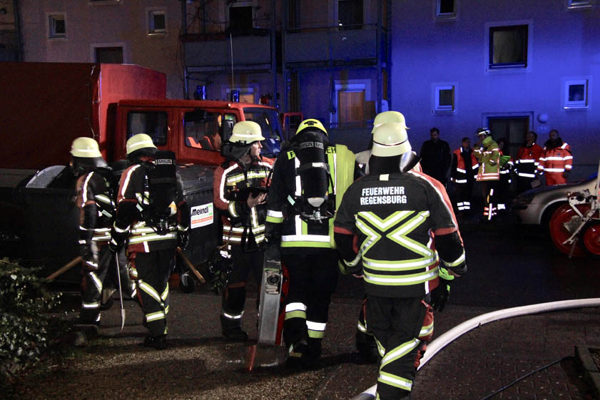 Einige der Anrufer waren laut Regensburger Berufsfeuerwehr bereits nicht mehr in der Lage, aufgrund der starken Rauchentwicklung das Gebäude selbstständig zu verlassen. Bereits nach drei Minuten konnte sich der Führungsdienst der Feuerwehr selbst einen ersten Eindruck vor Ort verschaffen: Aus einem vierstöckigem Gebäudekomplex drangen Rauchschwaden aus dem Treppenraum, ein Zimmer einer Erdgeschosswohnung befand sich bereits in Vollbrand. Mehrere Personen hatten sich selbstständig ins Freie gerettet. Eine Vielzahl von Anwohnern war noch in ihren Wohnungen.