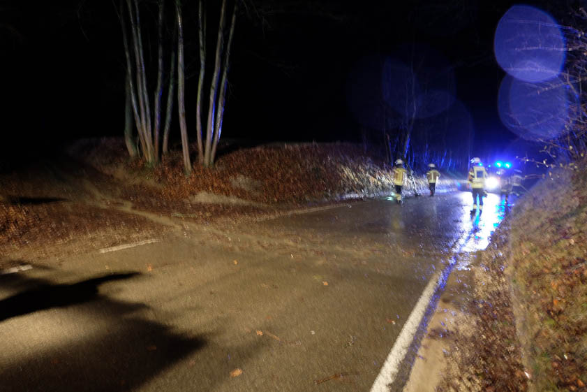 (ty) Nach den heftigen Regenfällen und den Sturmböen endete die Nachtruhe für die Einsatzkräfte der Feuerwehr Scheyern heute um 4.11 Uhr. Auf der Jetzendorfer Straße in Fernhag wurde ein Baum, der über die Fahrbahn ragte, gemeldet. Während des Ausrückens erreichte die Einsatzkräfte die Meldung zweier weiterer umgefallener Bäume: Auf der Staatsstraße 2084 Richtung Vieth auf Höhe des Sportplatzes des Klosters und vor dem Ortseingang Vieth. Die Einsatzkräfte sicherten die Einsatzstellen ab, entfernten die Bäume und säuberten die Straße, bevor diese wieder freigegeben werden konnte.