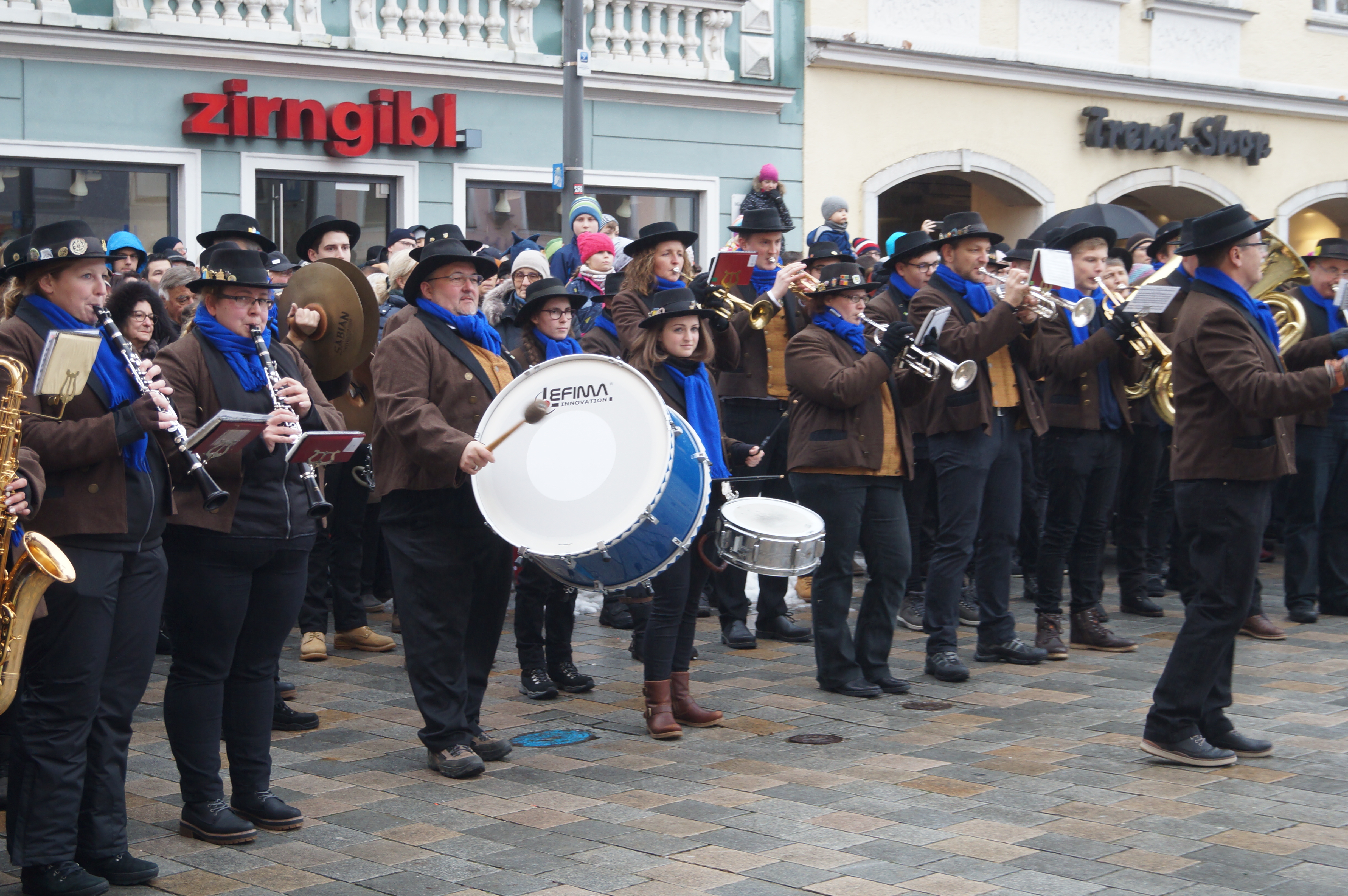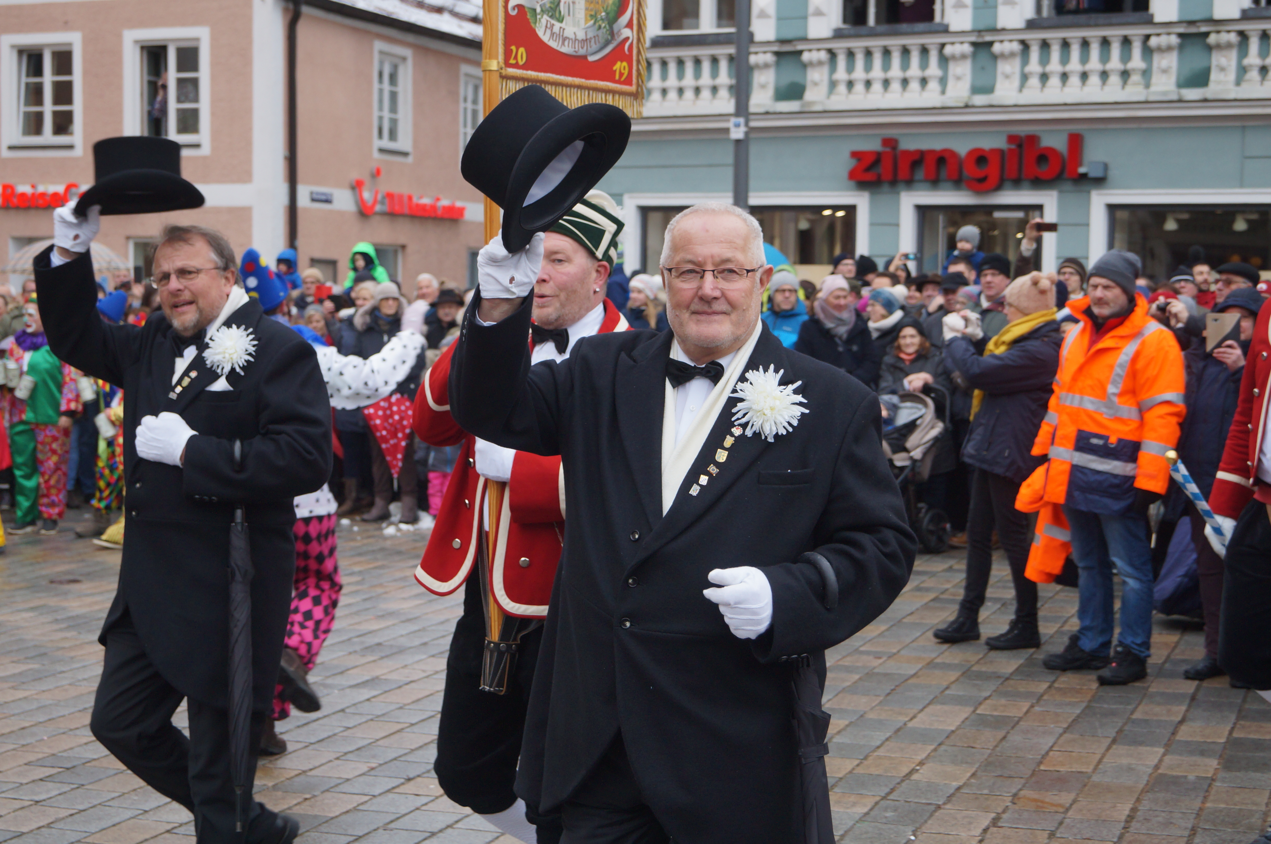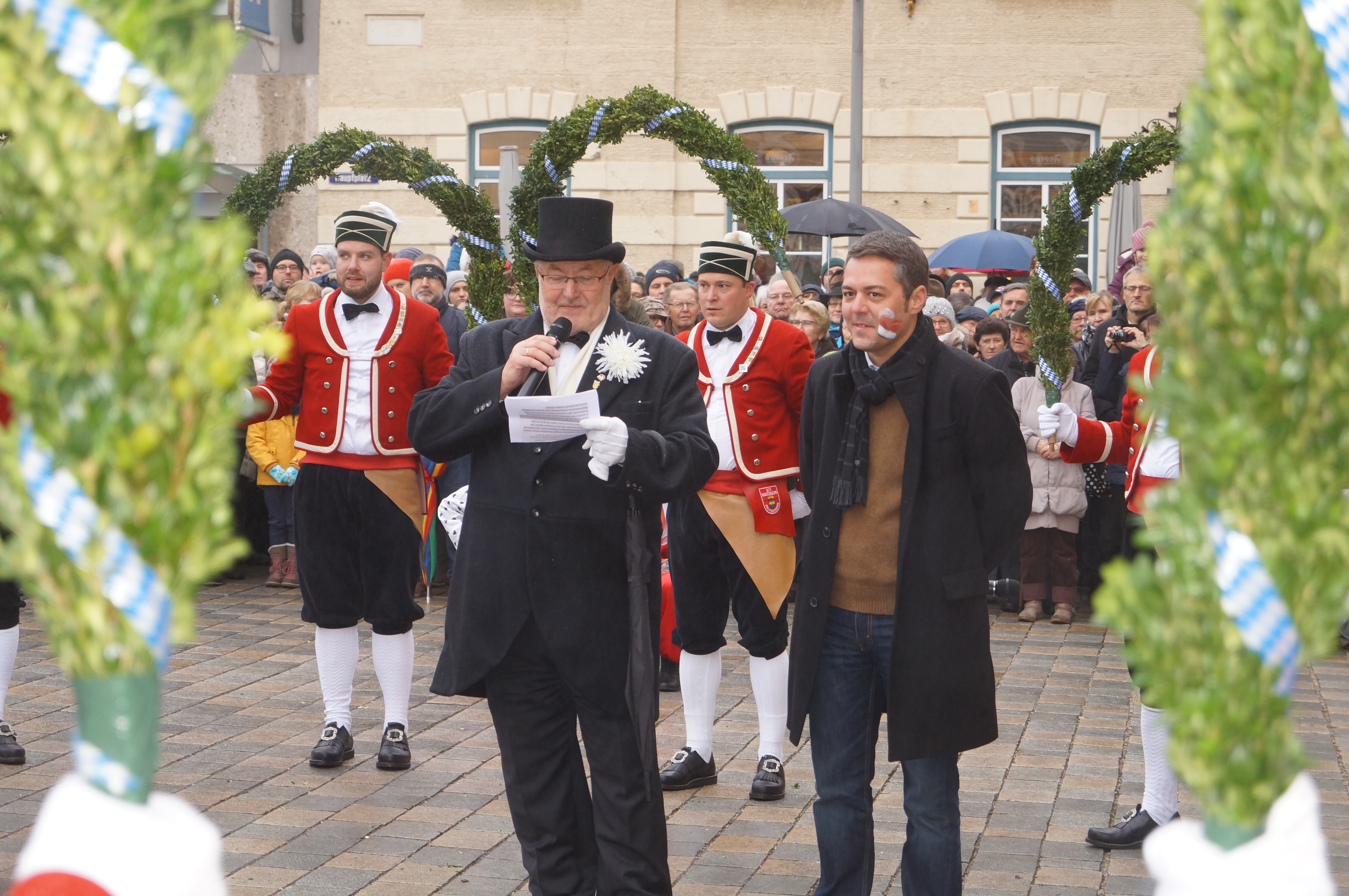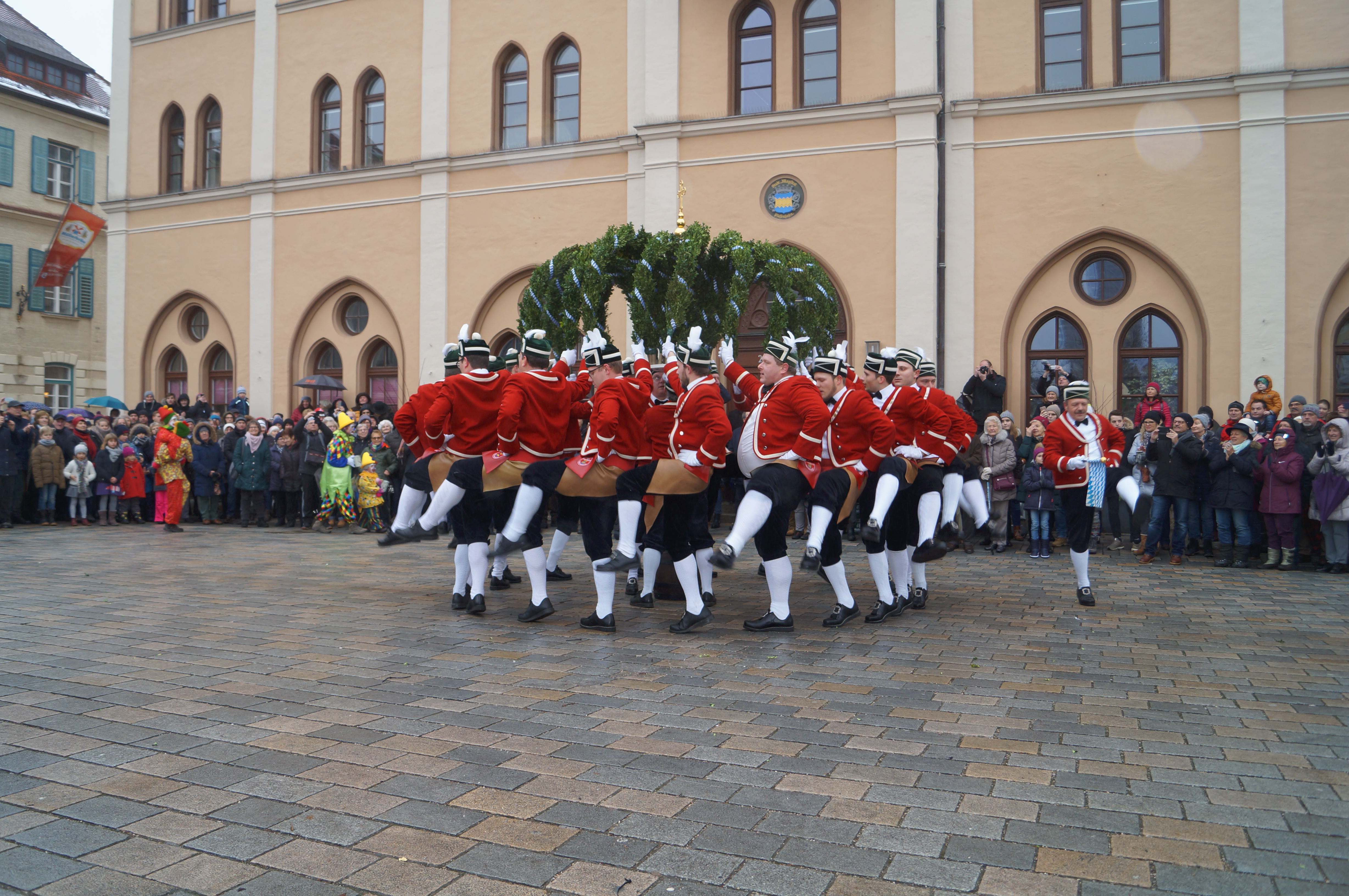 (akl) Alle sieben Jahre dürfen sie nur ran – dementsprechend groß war die Freude bei den Schäfflern und Kasperln des MTV Pfaffenhofen, als sie heute endlich wieder tanzen konnten. Zwar meinte es das Wetter bei leichtem Nieselregen und Temperaturen um die 0 Grad Celsius nicht unbedingt gut. Wie Pfaffenhofens Bürgermeister Thomas Herker (SPD) bei seiner Begrüßungsrede am Hauptplatz aber bemerkte, werde es bei den kommenden rund 170 Auftritten in der Region aber mit Sicherheit einige Male noch kälter werden.