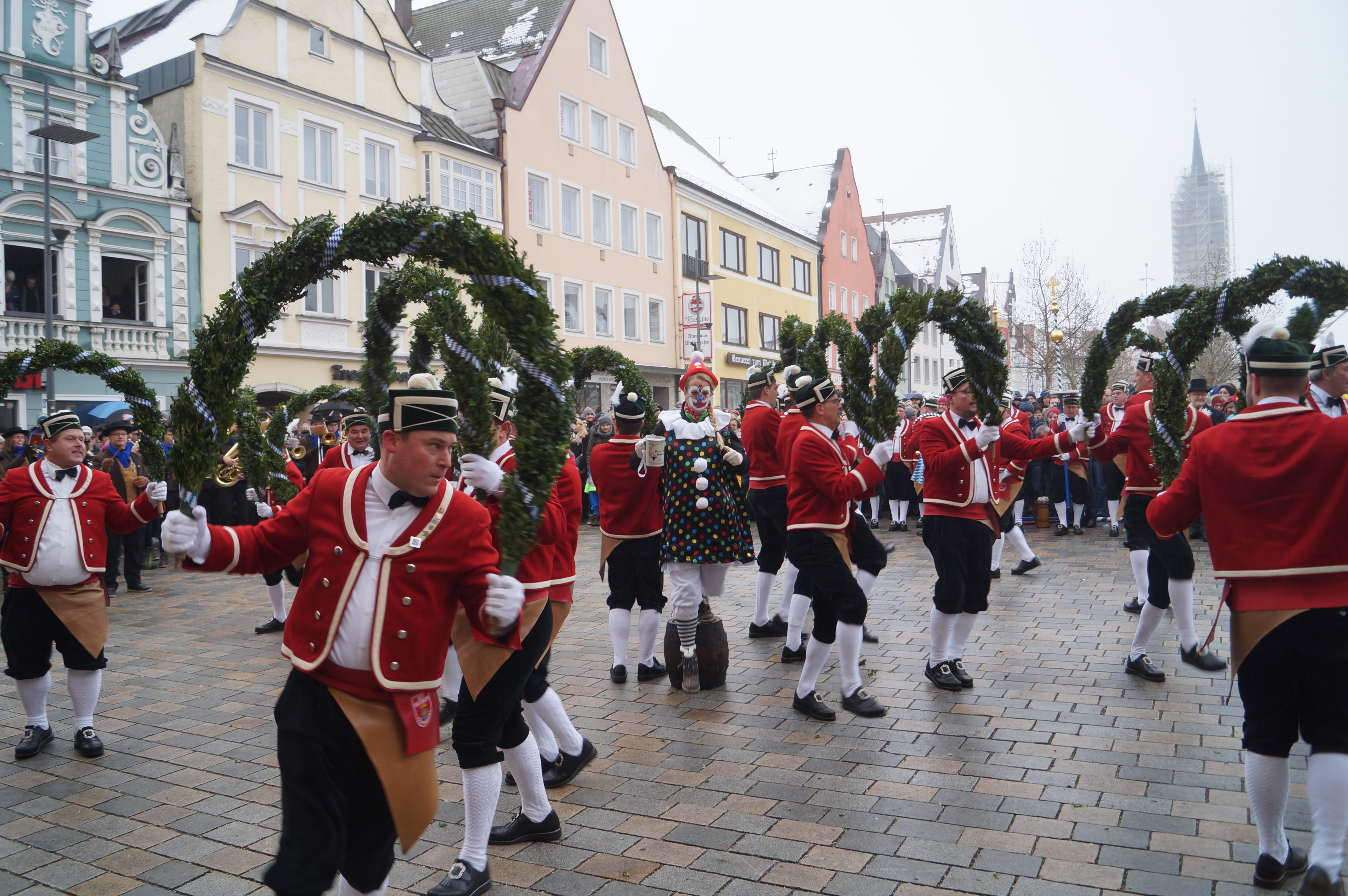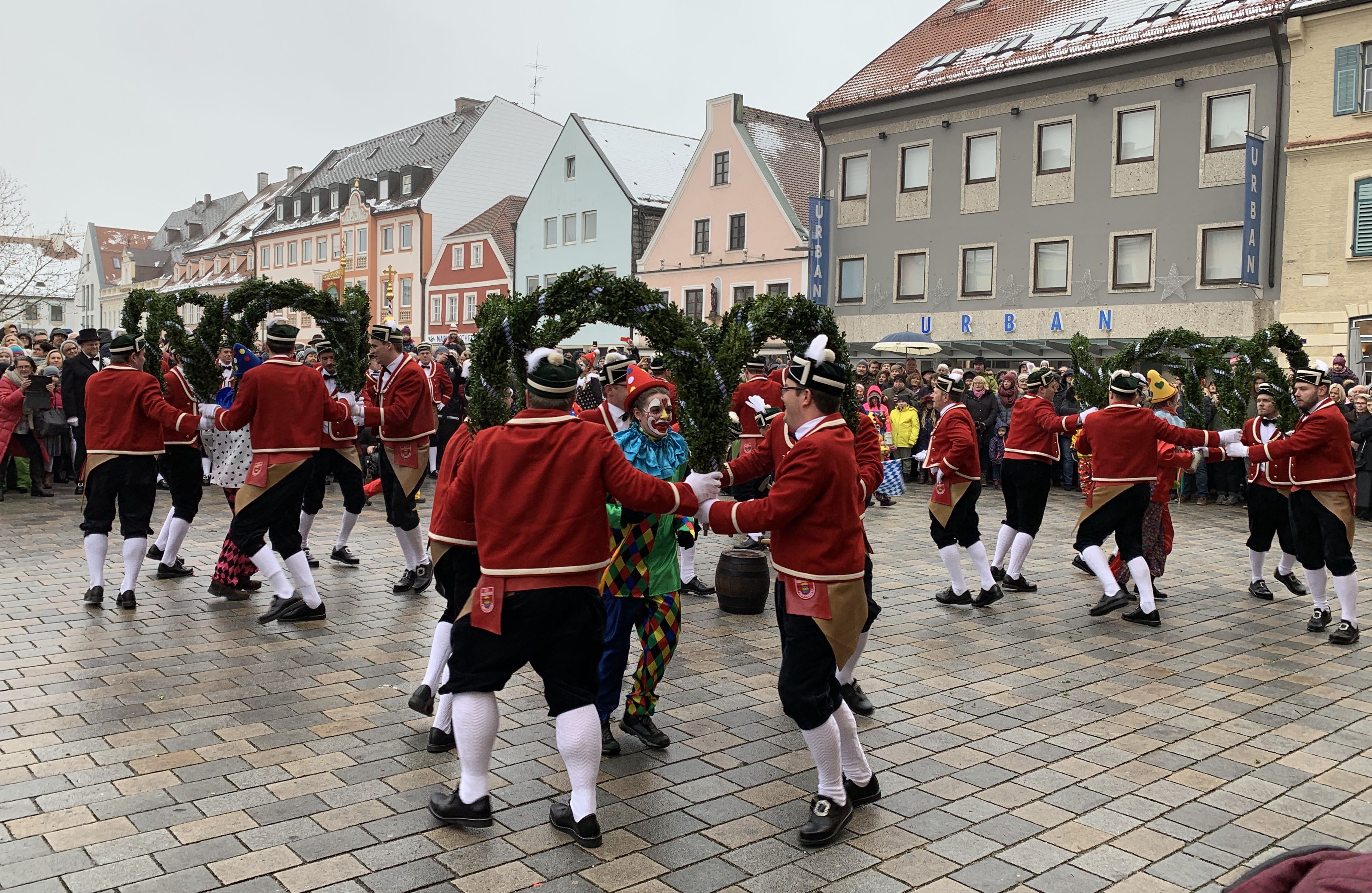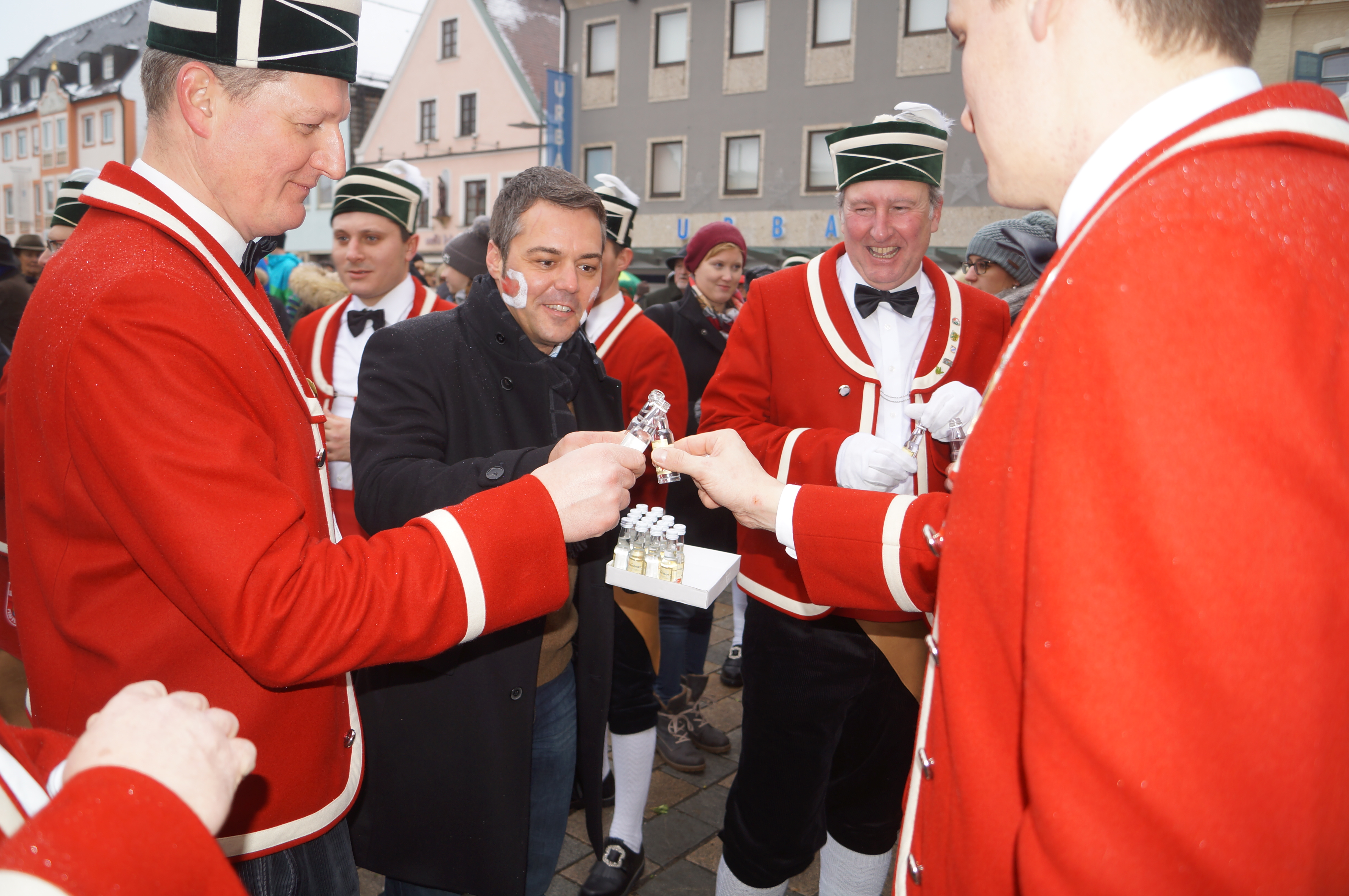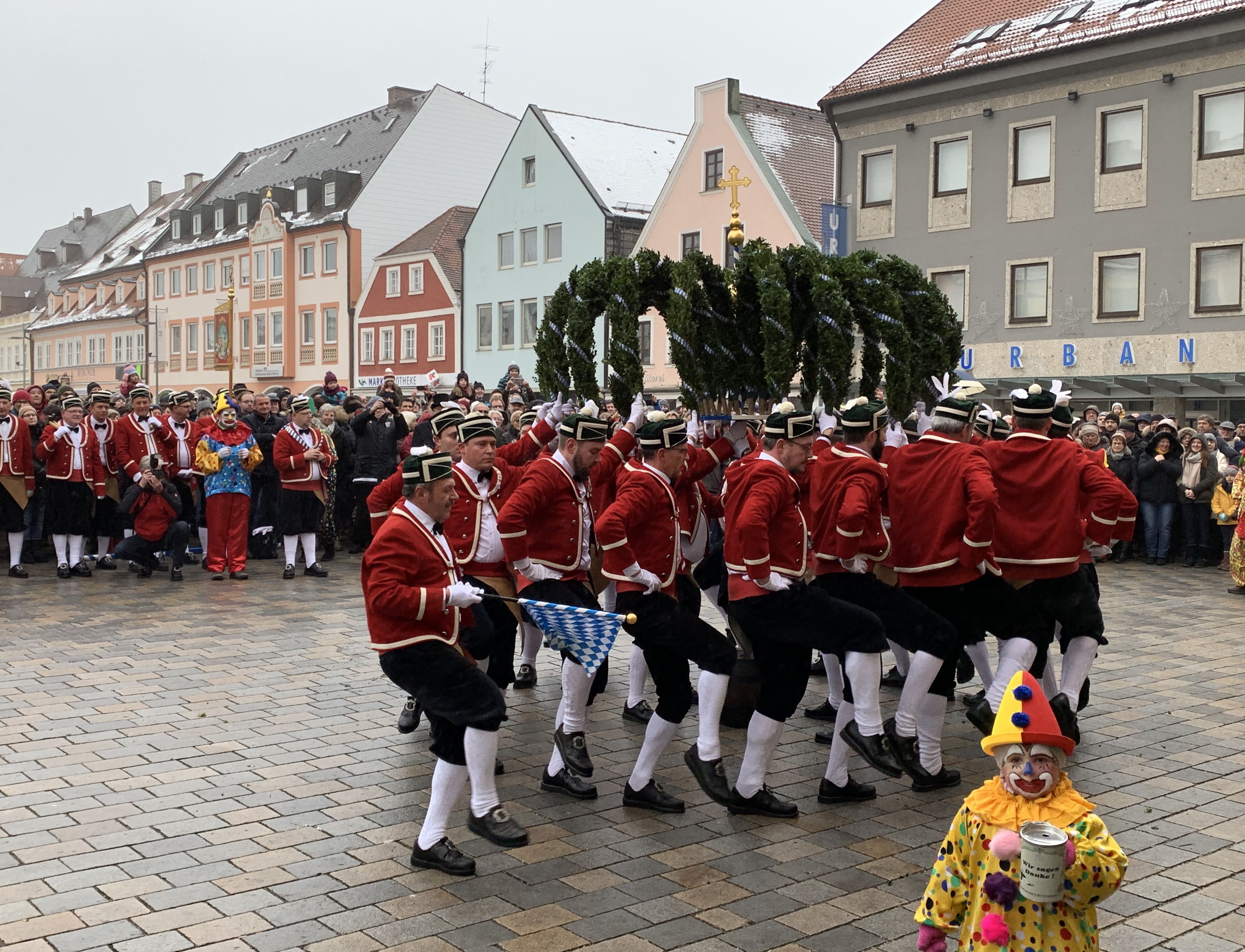 Den über 20 Schäfflern und den Kasperln, die traditionell das Kommen der Tänzer ankündigen und ebenfalls für gute Laune beim Publikum sorgen, wird das Wetter heute nach den langen Vorbereitungen aber fast egal gewesen sein. Wem dann doch etwas kalt wurde, dem reichte Bürgermeister Herker im Anschluss ein von innen wärmendes Getränk - wir waren vor Ort und haben einige Eindrücke in unserer Fotostrecke festgehalten.