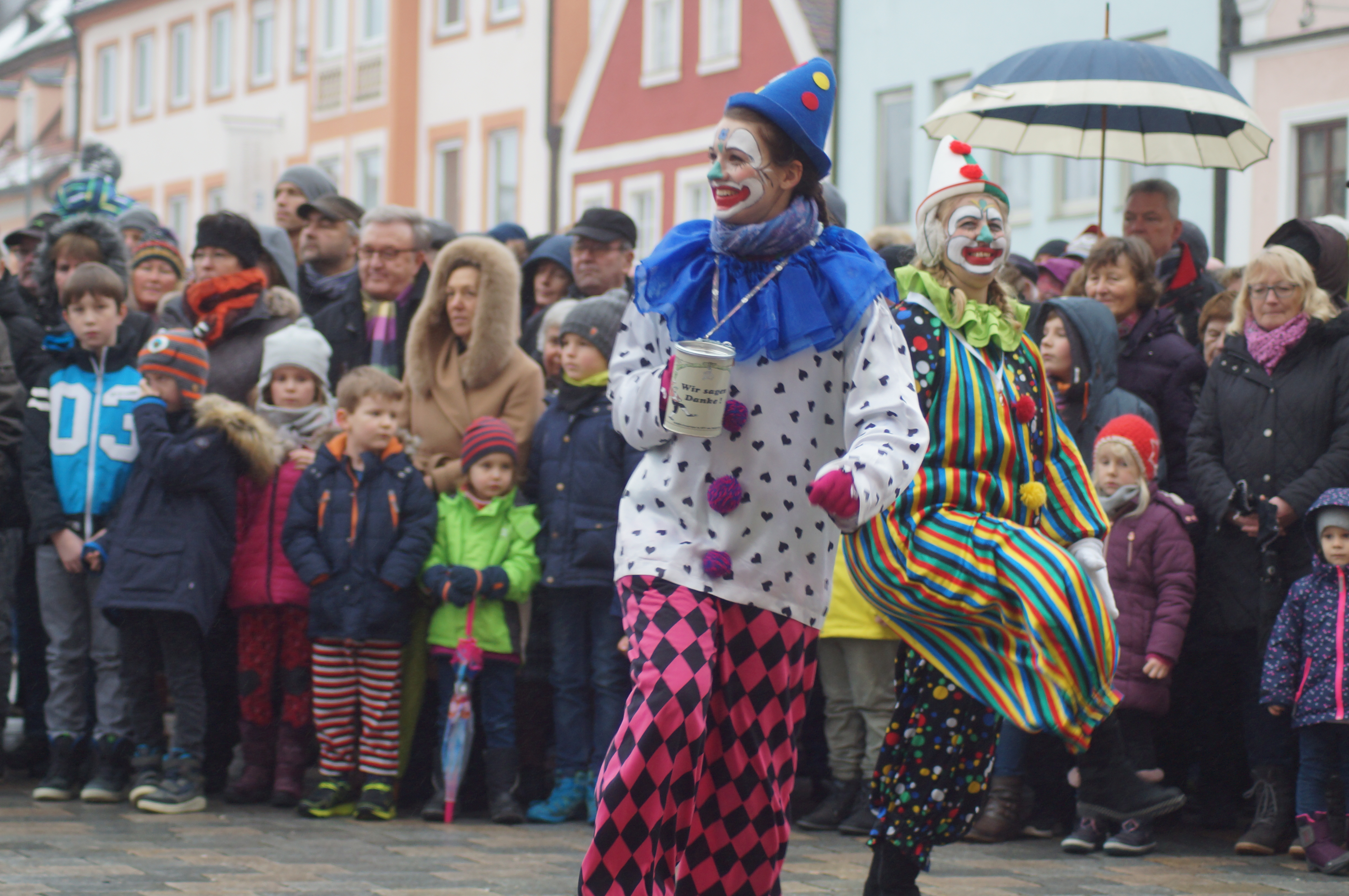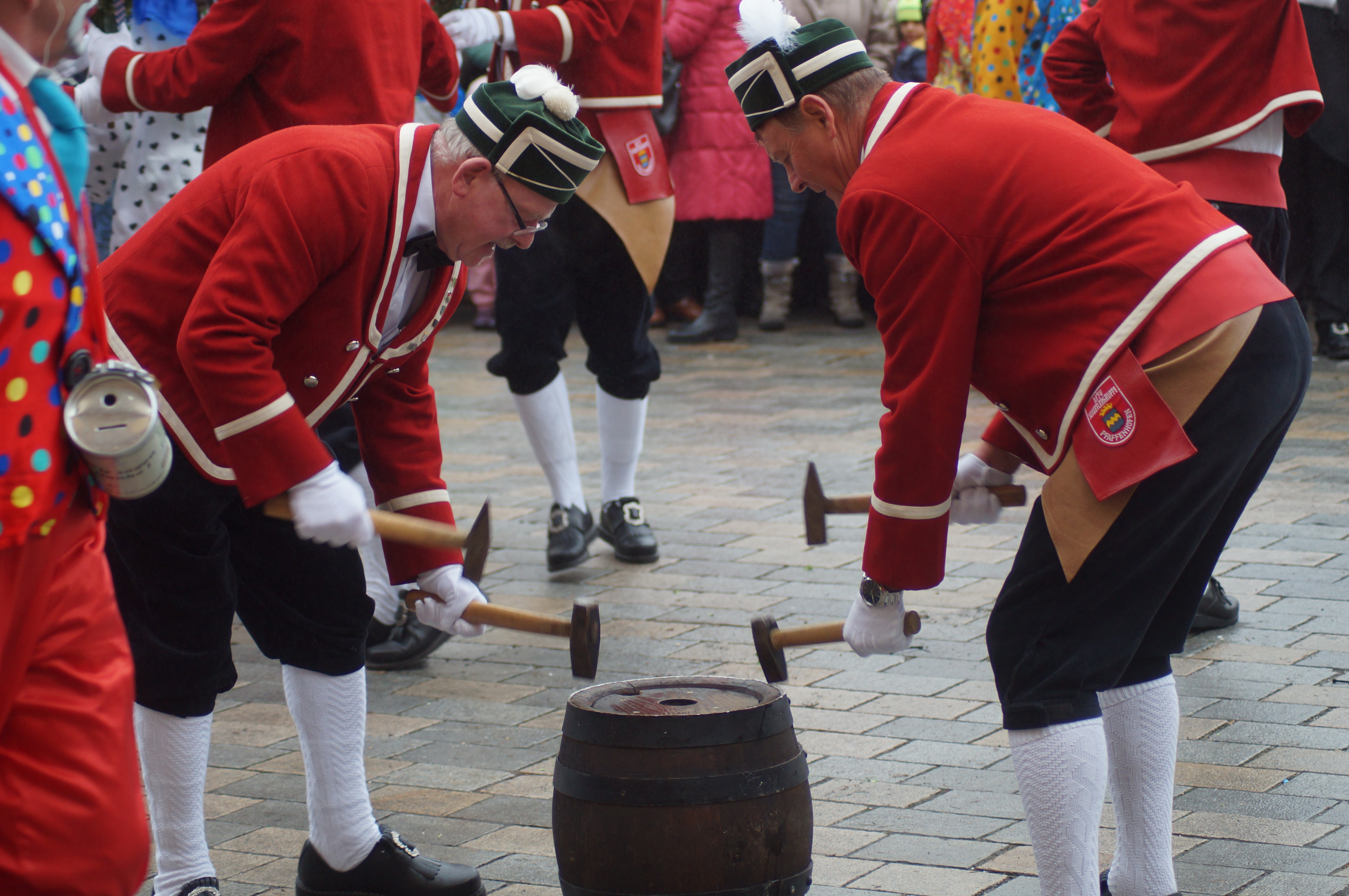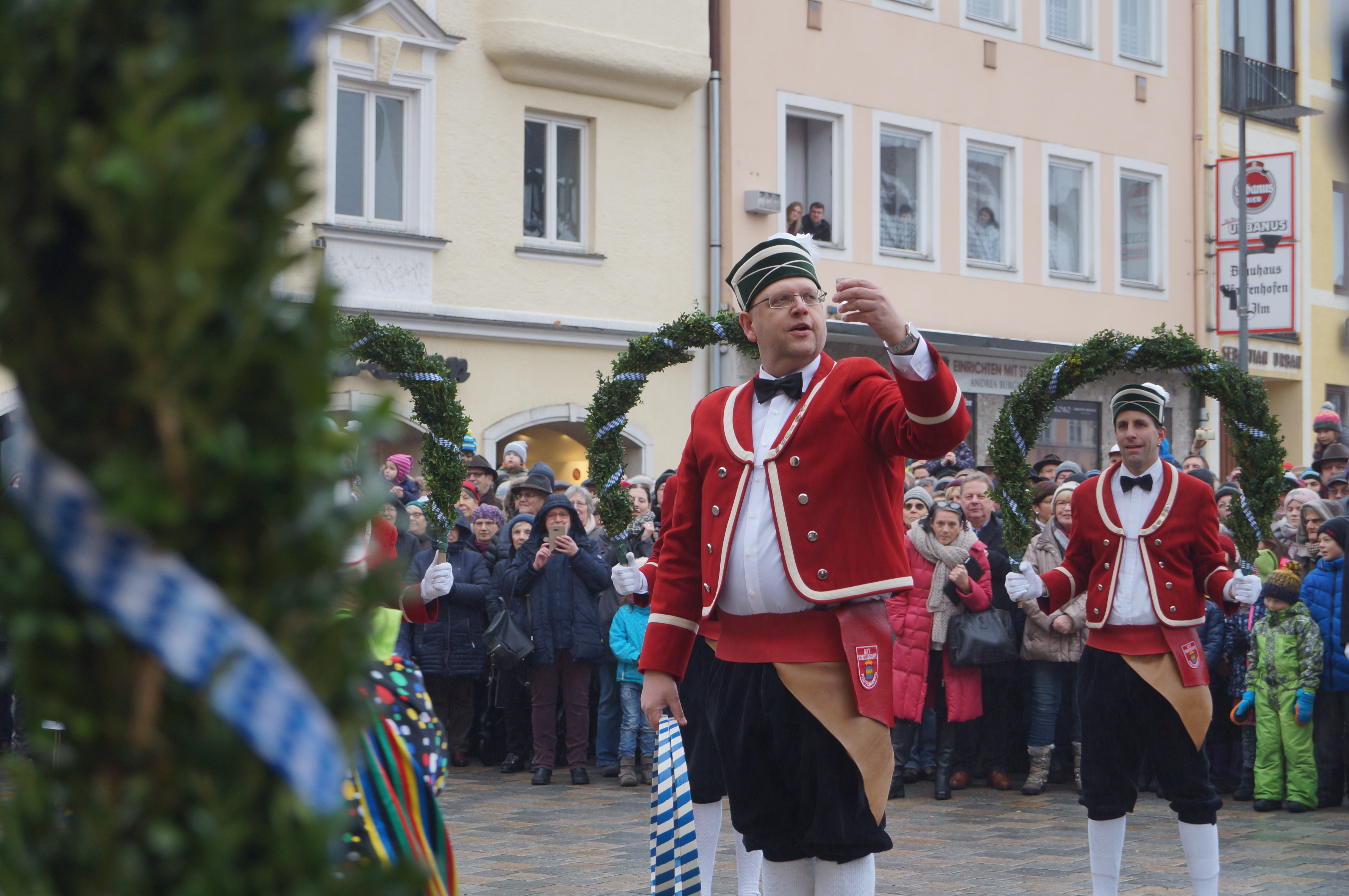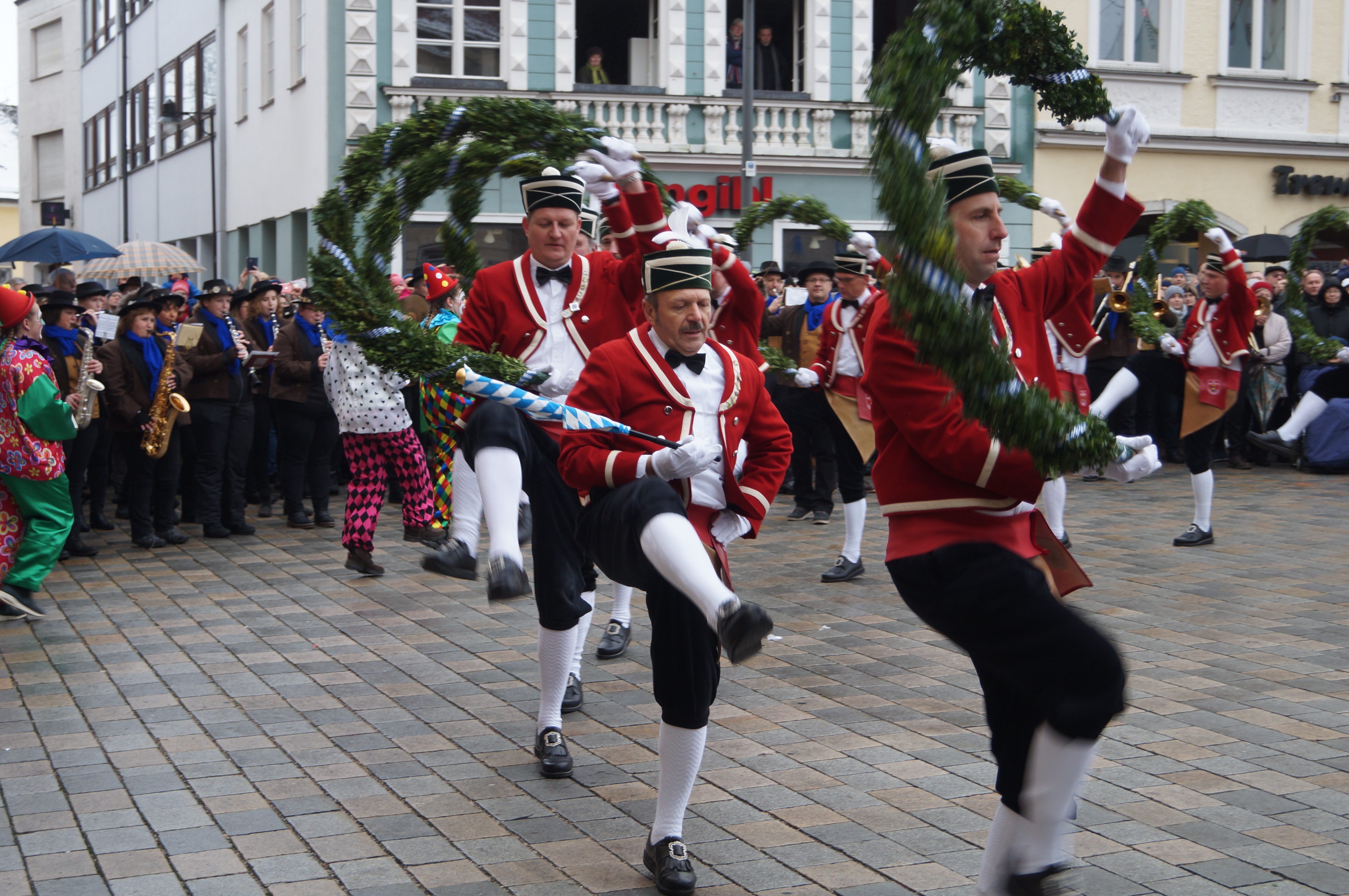 Den über 20 Schäfflern und den Kasperln, die traditionell das Kommen der Tänzer ankündigen und ebenfalls für gute Laune beim Publikum sorgen, wird das Wetter heute nach den langen Vorbereitungen aber fast egal gewesen sein. Wem dann doch etwas kalt wurde, dem reichte Bürgermeister Herker im Anschluss ein von innen wärmendes Getränk - wir waren vor Ort und haben einige Eindrücke in unserer Fotostrecke festgehalten.