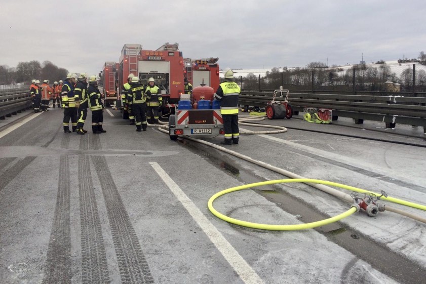 Zunächst wurde die A3 in Richtung Regensburg komplett gesperrt. Weil laut Polizei aber "durch kleinere Explosionen" auch Teile herumgeschleudert wurden sowie wegen der "massiven Rauch- und Hitze-Entwicklung" musste die Autobahn dann auch in Richtung Nürnberg gesperrt werden.